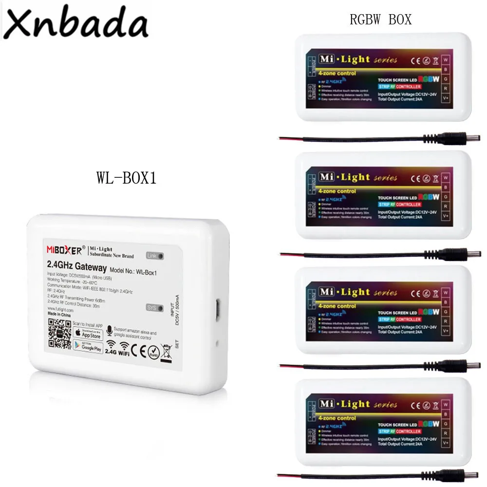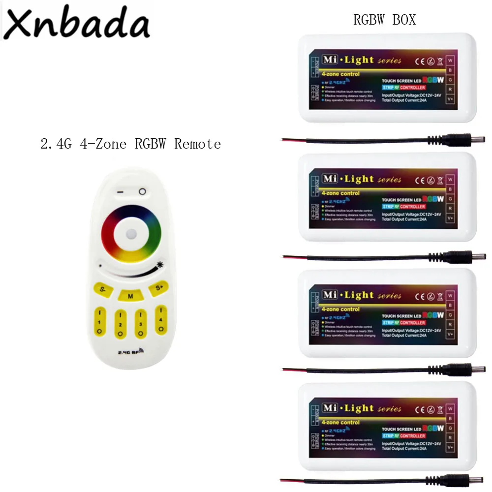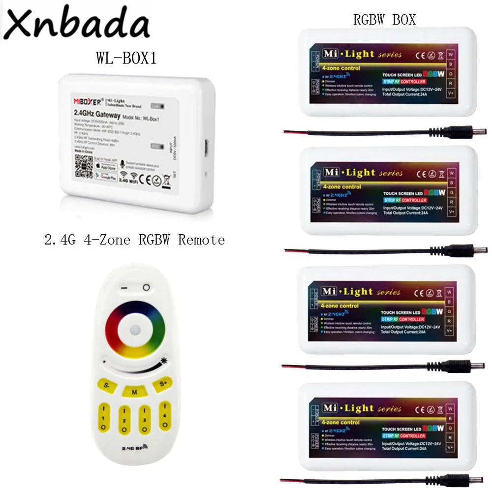 MiBoxer RGBW светодиодный контроллер Milight RF сенсорный дистанционный, 2,4G беспроводной WIFI Приложение IOS Android,RGBW 4-зонный светодиодный контроллер для светодиодной ленты