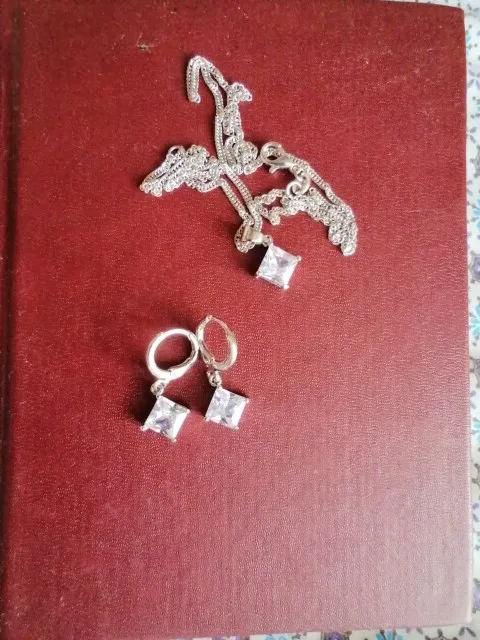 Женские аксессуары, кулон, ожерелье, серьги, ювелирный набор, женский квадратный Блестящий Подвеска со стразами Фианит, серебро 925 пробы