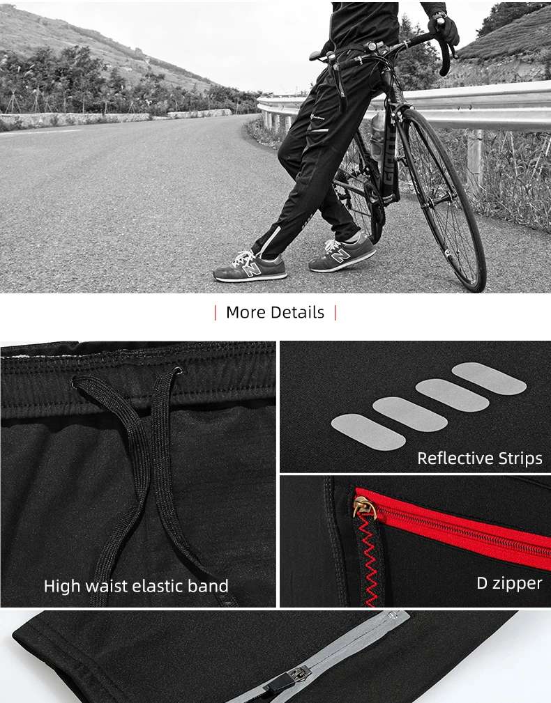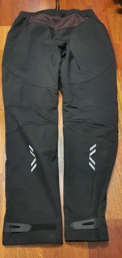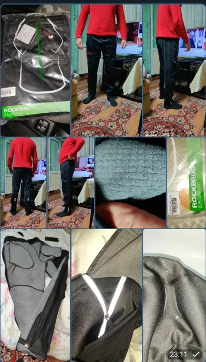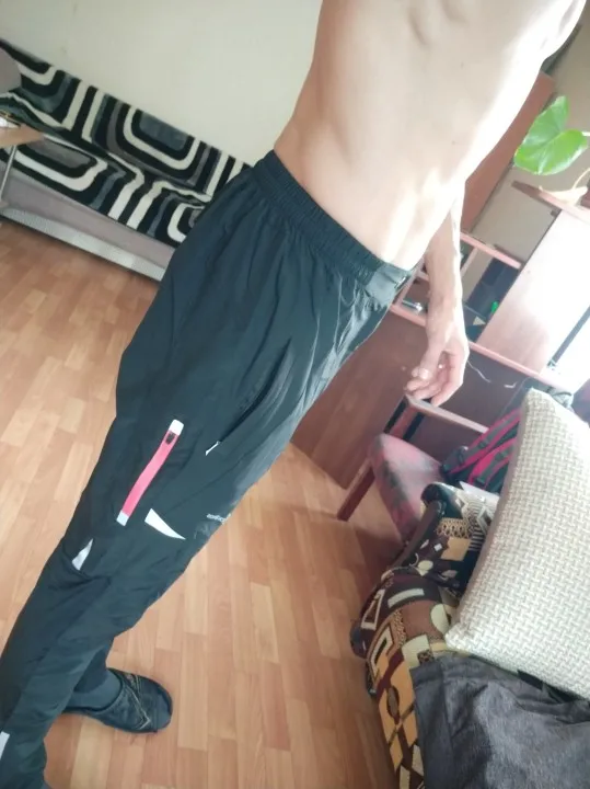 Заказала мужа на зиму кататься на велосипеде. Это 1ый опыт покупки велосипедных штанов. Конкретно в этой тёплой моделе на поясе резинка и завязки, 2 крепких кармана на молнии и самое главное по низу штанин идут липучки, которые позволяют заузить штанины, а когда не нужно - расширить. Липучки, не тряпочные, как мы обычно видим на одежде, а мелкие пластиковые звёздочки, которые цепляются за полоску флиса. Штаны плотные, вода с них действительно скатывается, мужу на велосипеде в них было комфортно в -10, -15. В -5 он одевает легкие штаны без утеплителя. Сделала фото изнутри штанов, т.к. сама при покупке не могла понять, чем 2 теплые модели отличаются друг от друга. Надеюсь, что мой отзыв поможет Вам сориентироваться. Что касается замеров, то надо учесть, что штаны немного стрейч. Длина по внутреннему шву 77,5 см, ПОТ (резинка в нерастянутом состоянии) 40,5 см. ПОТ (резинка в максимально растянутом состоянии) 52,5 см ПОБ 57,5 см ширина штанины 19 см и еще можно уменьшить липучкой.