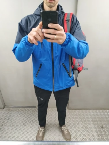 Хорошо защищает от холода и ветра. Выдерживает небольшие дожди. Размер XXL для 85 кг и 1 м76. Очень хороший материал и легко чистить