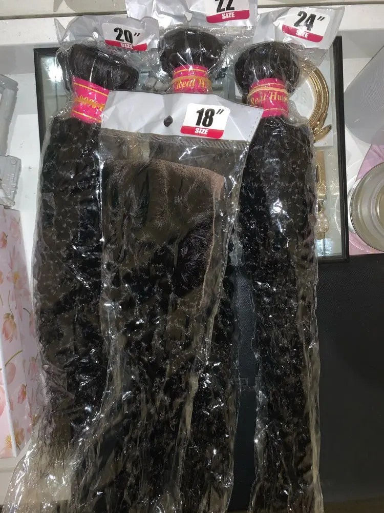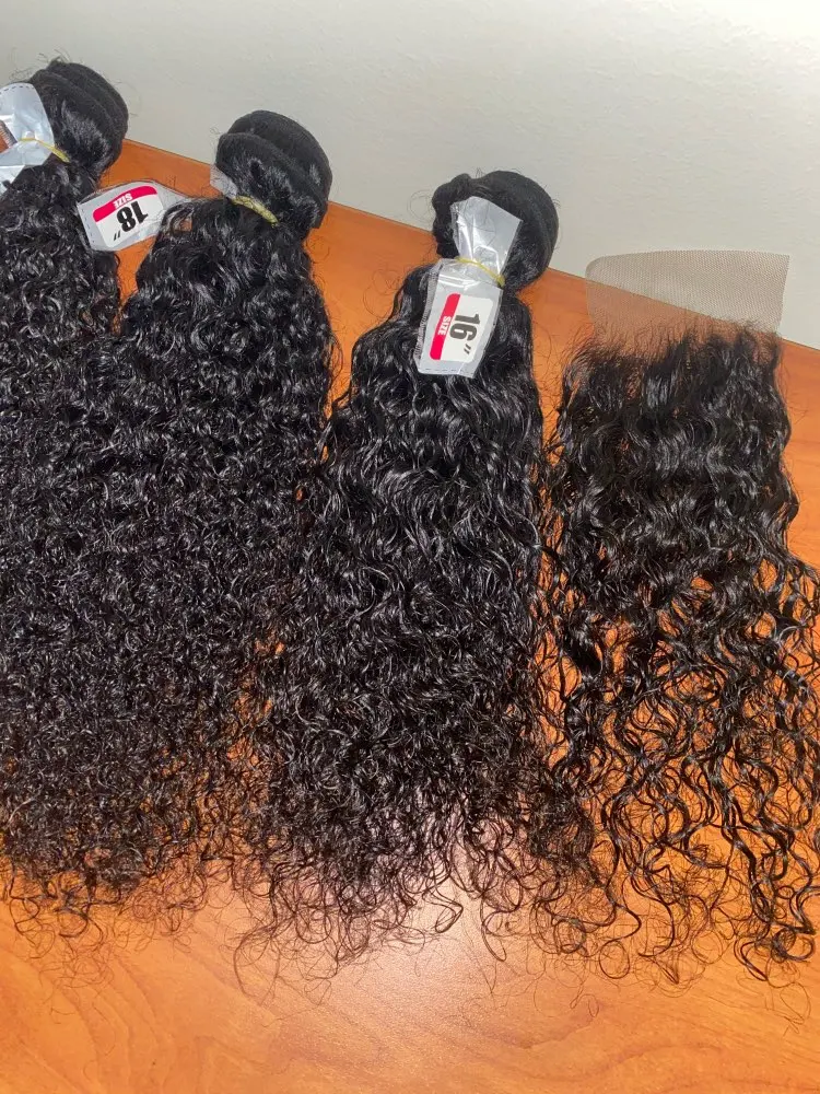 The hair I received was synthetic hair! Not human hair. That’s terrible. Texture of closure is different from the bundles. Disappointed!