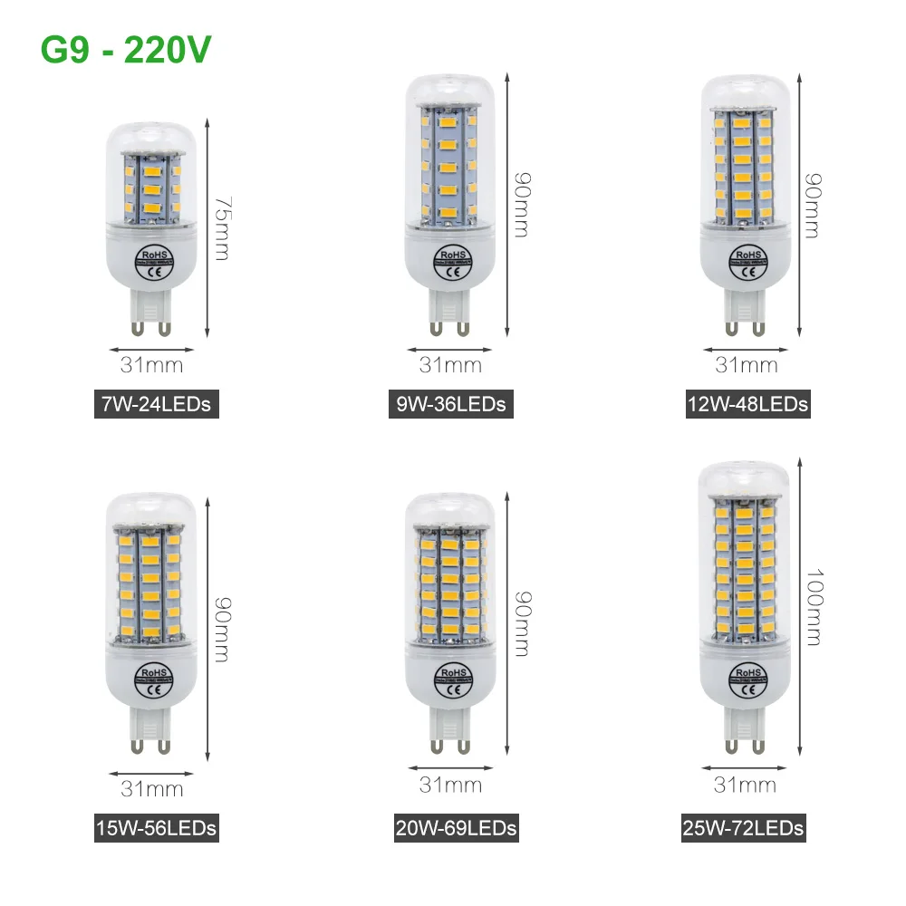 Светодиодсветильник лампа-кукуруза G9 GU10 24365672 SMD 5730 Bombillas 220 в 240 В, люстра, светодиодная лампа