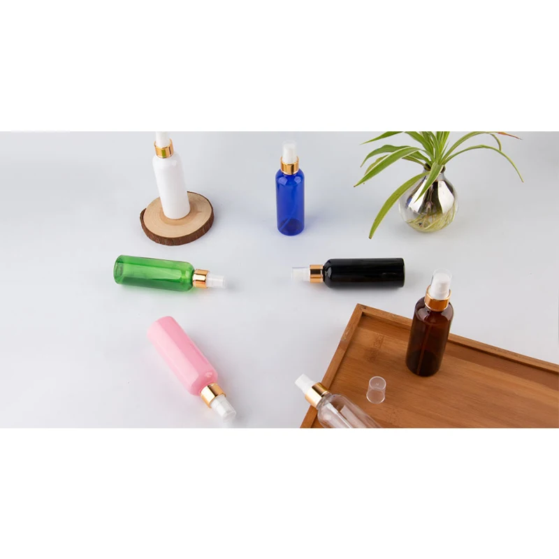 100 мл X 30 пустая установка для макияжа спрей пластмассовые бутылки с помпой с золотым алюминиевым воротником 100cc Парфюмерия косметический контейнер для пэт бутылок