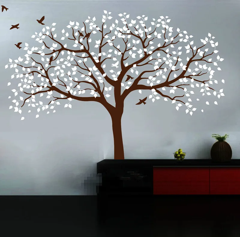 Огромная белая наклейка на стену с деревом и птицами, настенное искусство, наклейка на стену для детской комнаты, природный Настенный декор 210*213 см D534