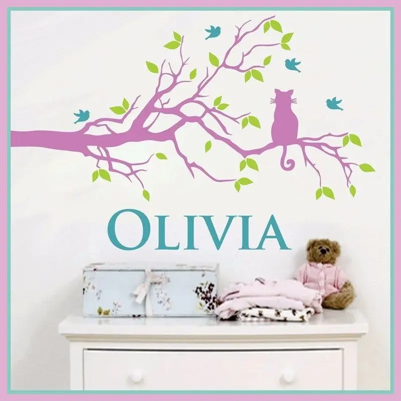 105x70 см детские настенные наклейки дерево кошачья ветка детская Индивидуальное Имя Наклейка на стену наклейки для спальни Muraux D454