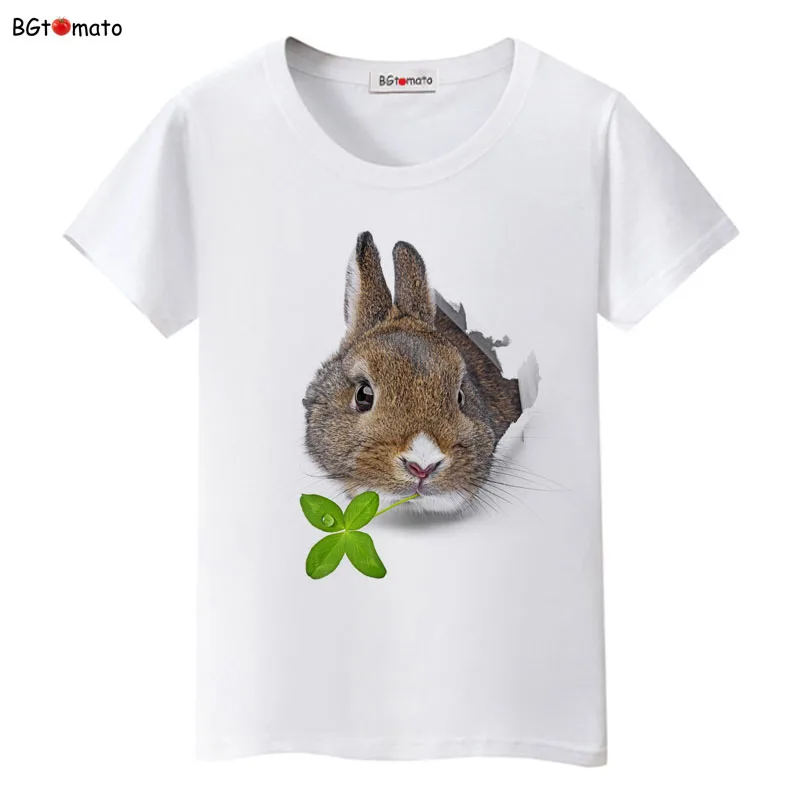 Футболка bgtomato, милая 3D футболка с изображением кролика и травы, женские суперзабавные футболки, оригинальная брендовая одежда, крутая футболка