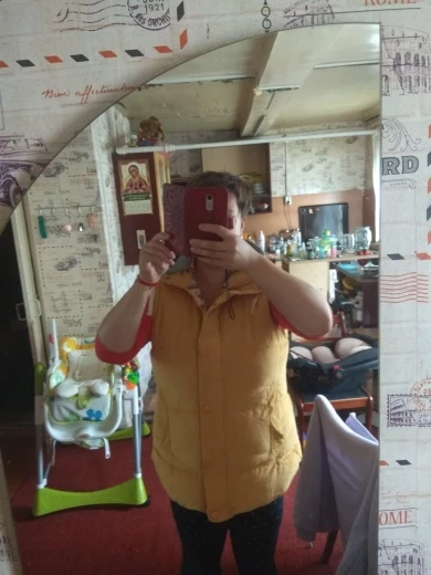 Спасибо. Жилет хороший, ткань приятная, мягкая, похожа на тонкий замш,в местах заломов создается некий бархатистый отлив.Качество фабричное. Пошив аккуратный. Кнопки крупные, карманы нормальной глубины.Цвет приятный--спокойный горчичный. В общем, в гардеробе такая вещь не будет лишней. На мои параметры 100-80-100 взяла XXL, хотела XL, но уже не было. Этот размер тоже хорошо, можно одеть теплый свитер. На дачу или на пикник будет очень тепло и удобно, но и за рулем тоже. На мой рост 1.60 -- попу закрывает. Спасибо и всего доброго.