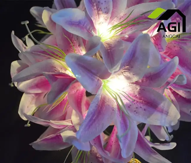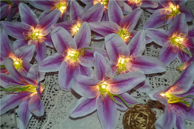 Батарея приведенный в действие искусственное фиолетовое цветы лилии гирлянда, Свадебная вечеринка спальня Рождество украшения сада ко Дню Святого Валентина Декор