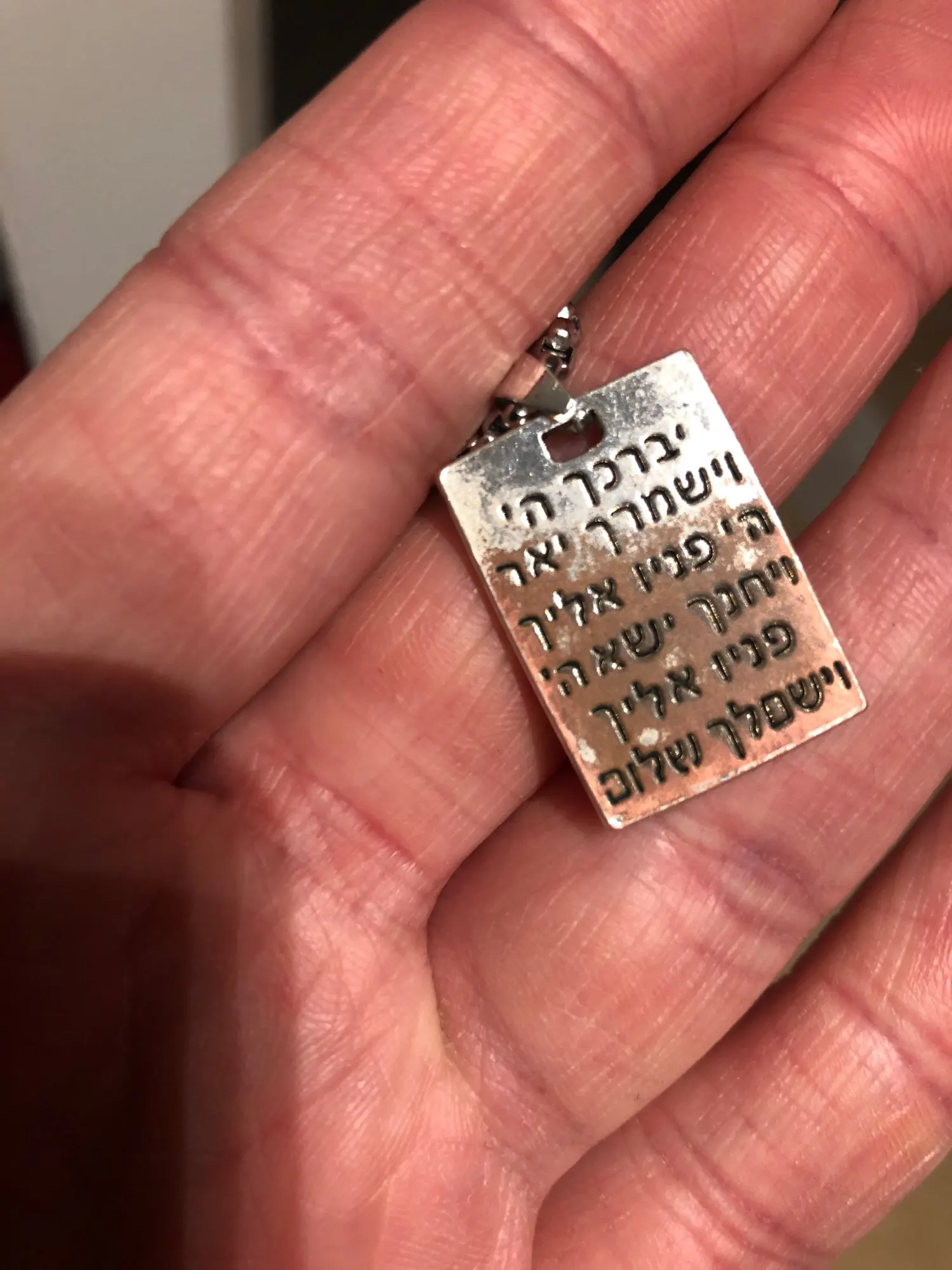 Мне нравится этот товар и то, что записано на ожерелье. Цепочка немного короткая, и я не могу ее носить с комфортом