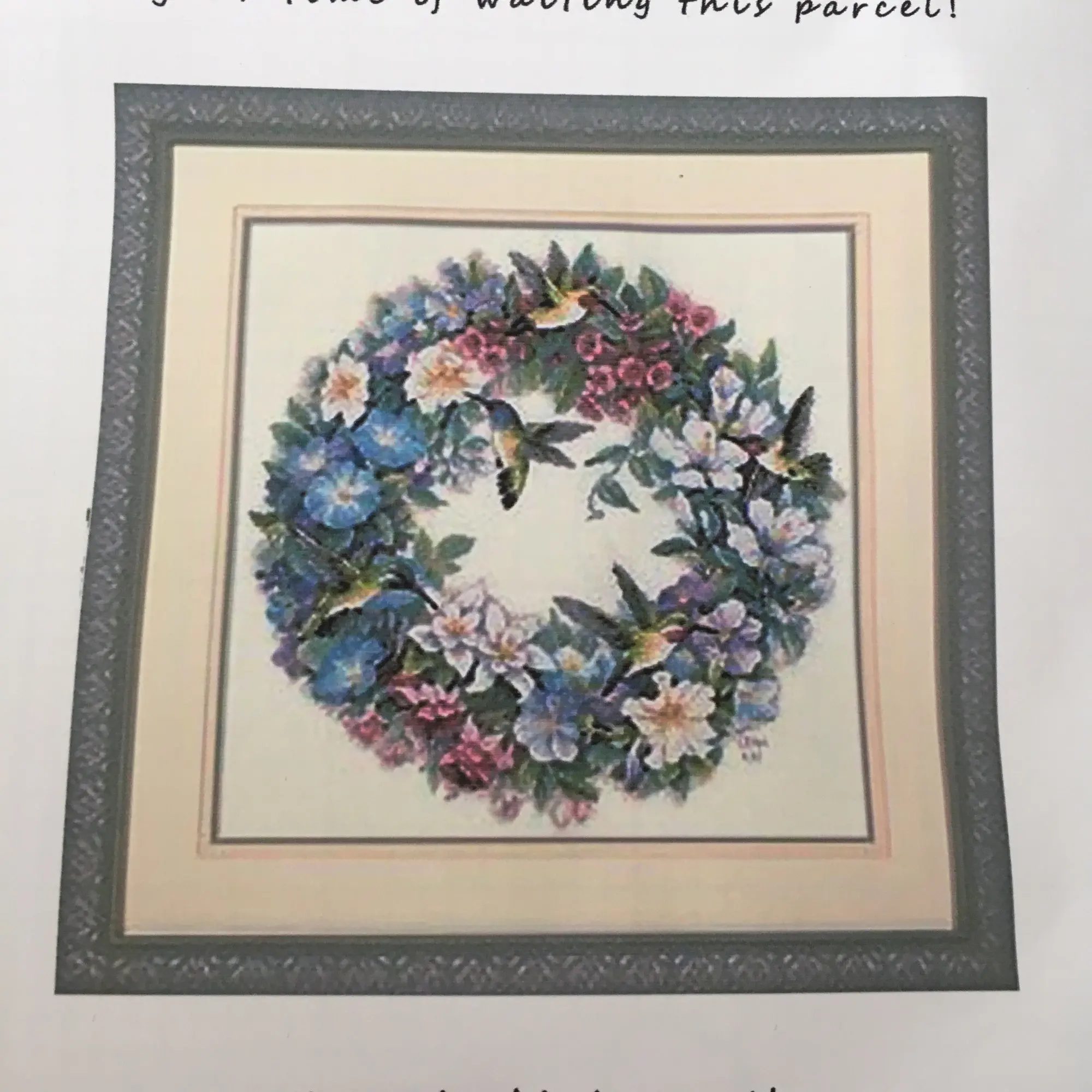 Имя: Венок колибри Количество стежков: 241x233Стежки Цвета Около 46 цветов Размер изображения:44x43 см, 18 карат