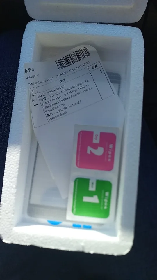Отлично упаковано в пенопласт, плюс стекло в отдельном мешочке и пупырке. На xiaomi mi max 2 подошло. В наборе стекло, две салфетки для очистки, стикеры для ровной наклейки стекла и жидкость, для того, чтобы убирать пузыри по краям. К жидкости приложен qr-код, который перенаправляет на видео-инструкцию. В общем, продавец молодец, я довольна покупкой. Спасибо!