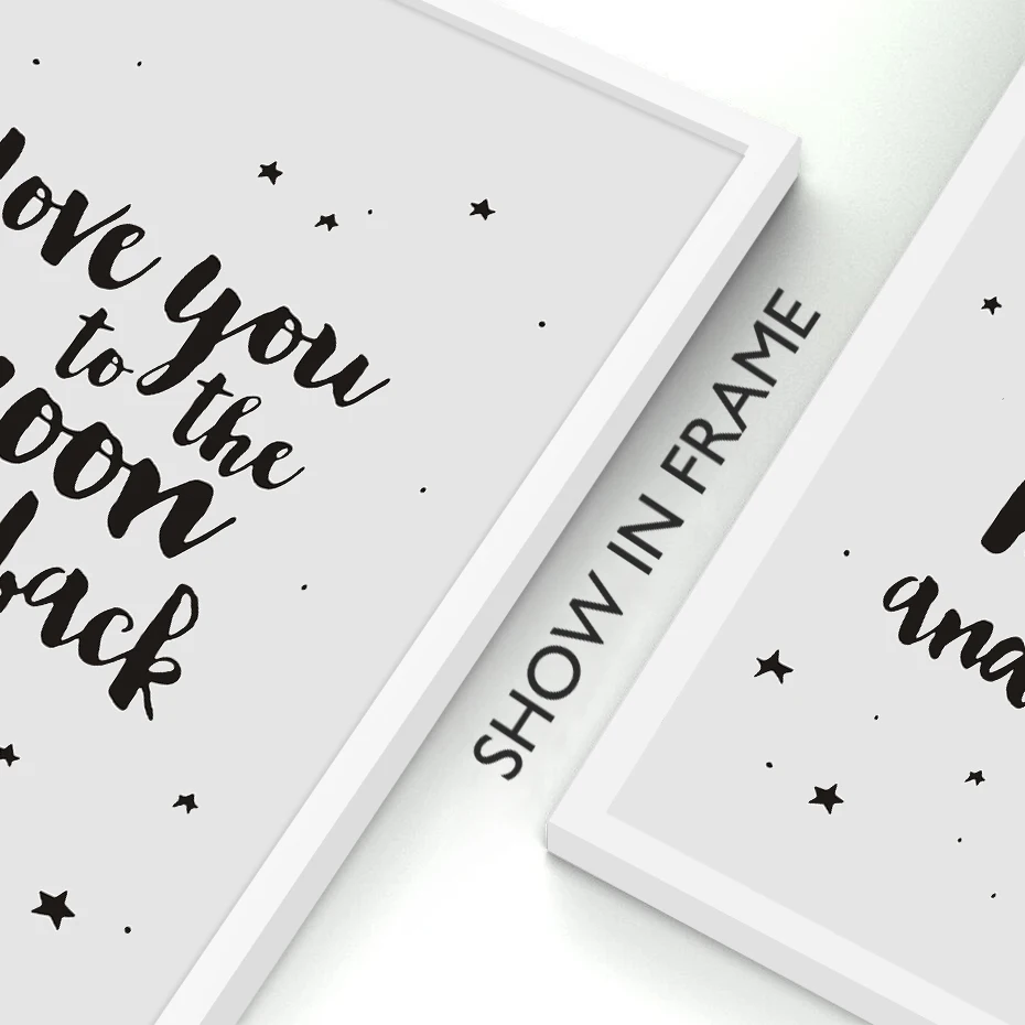 Постер с надписью We Love You to The Moon and Back, картины на холсте для детской комнаты со звездами, настенные художественные принты, декор для детской комнаты без рамки