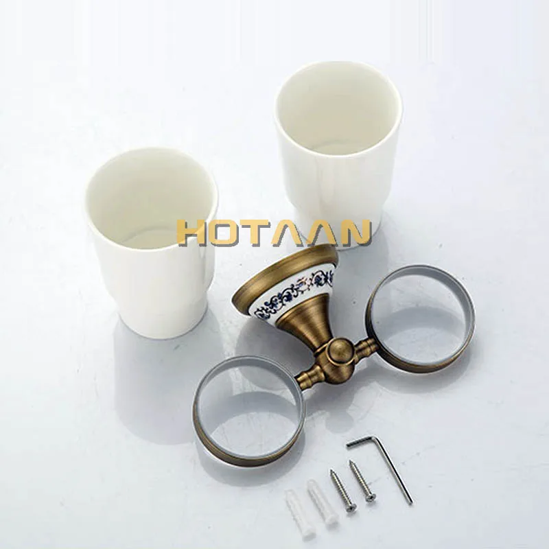 Бесплатная доставка Модный держатель для зубных щеток, чистая медь и керамика, двойная чашка для ванной комнаты, держатель для ванной комнаты, набор для ванной комнаты-оптовая продажа YT-11508