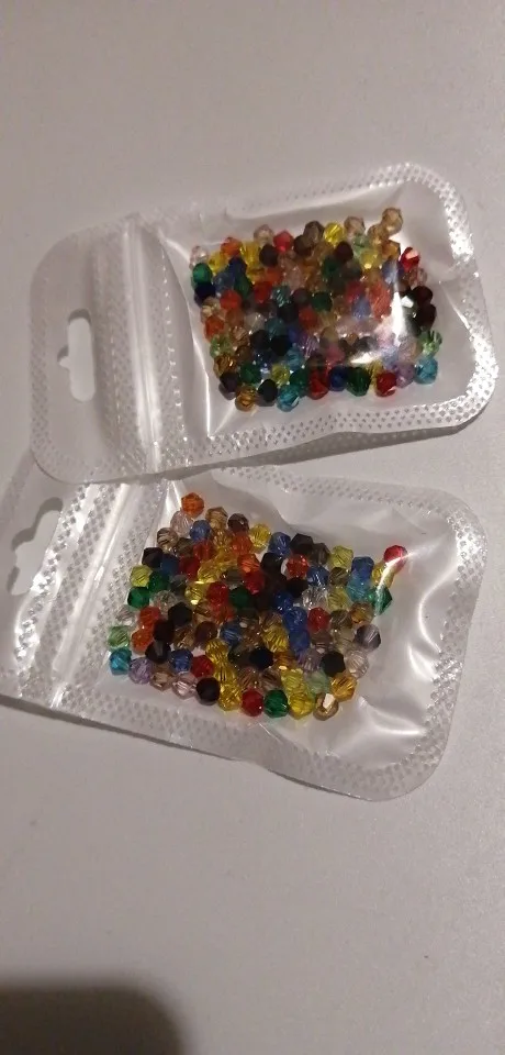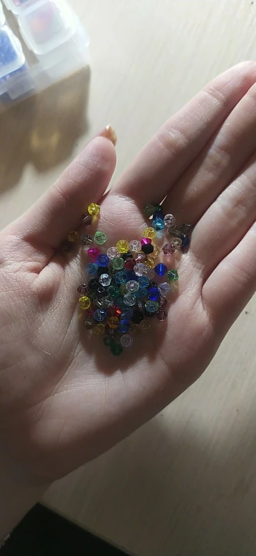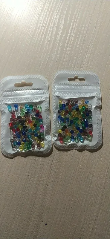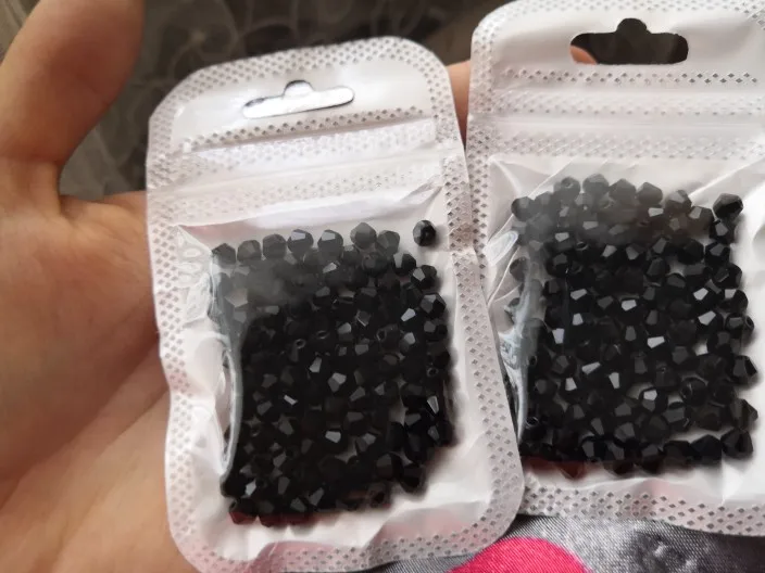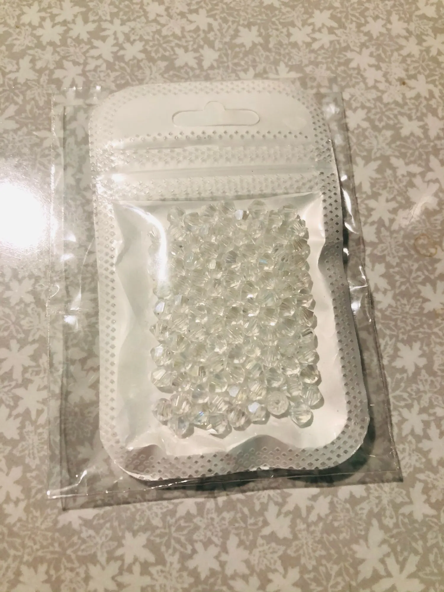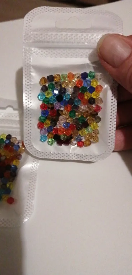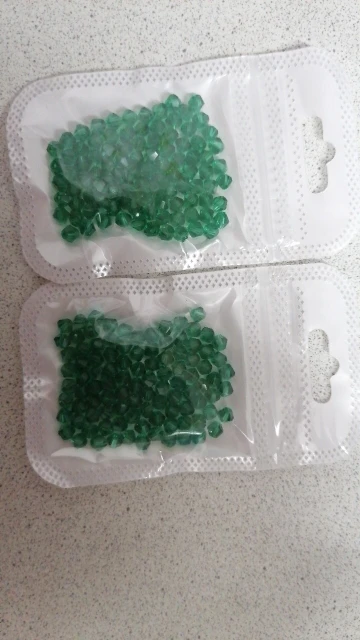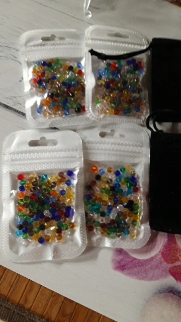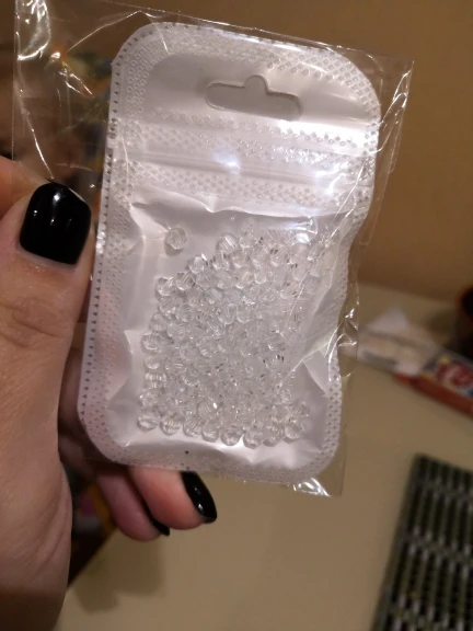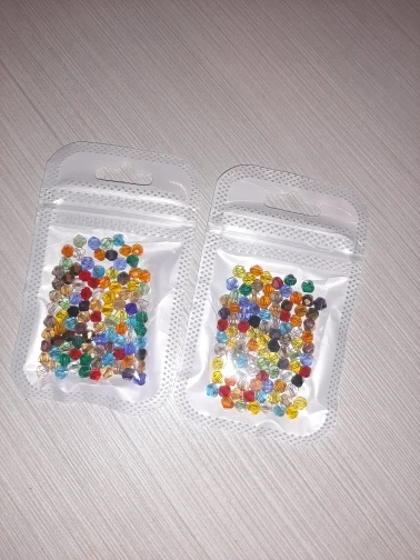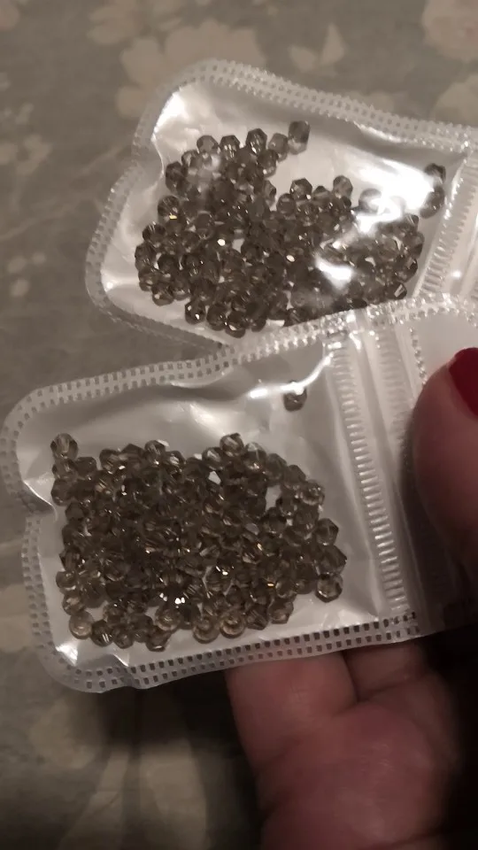 Очень красивые бусинки, переливаются на свету, сначала показалось, что пришли просто прозрачные, но нет, есть радужный отлив, как у бриллиантов. Бусины пришли целыми и без повреждений, соответствуют описанию, пришли два пакетика как и заявлено продавцом. Рекомендую!!!