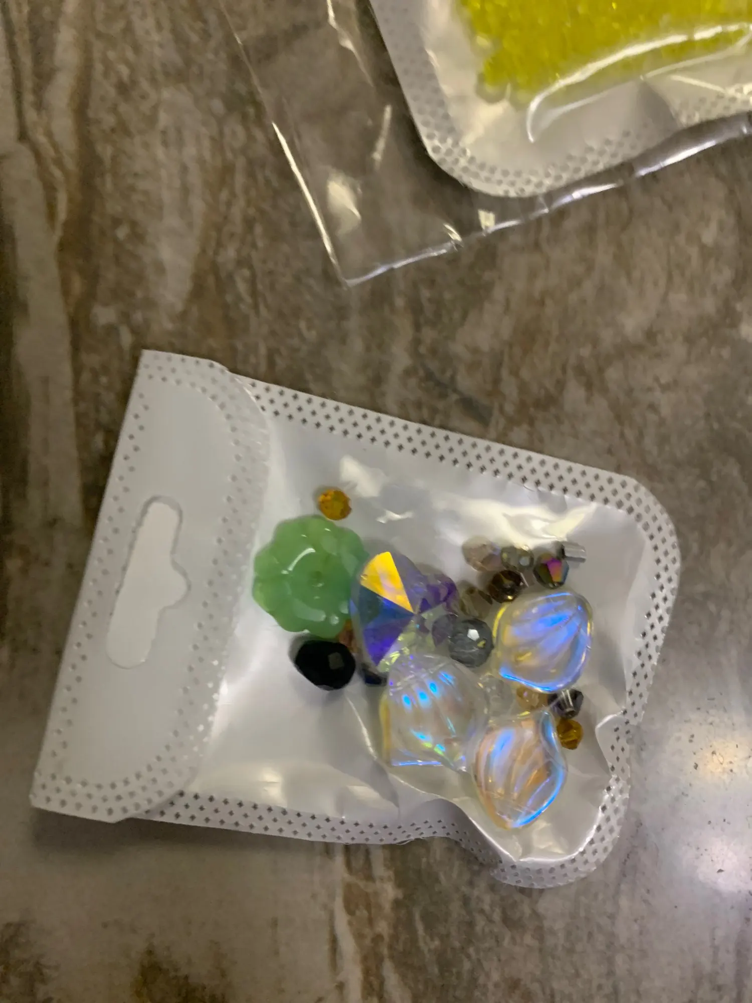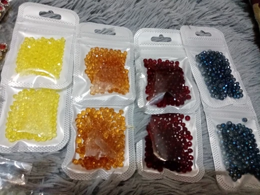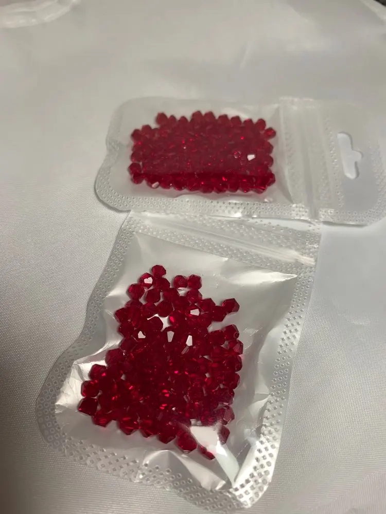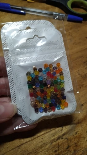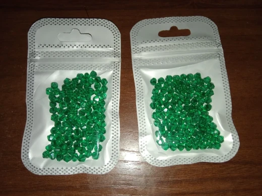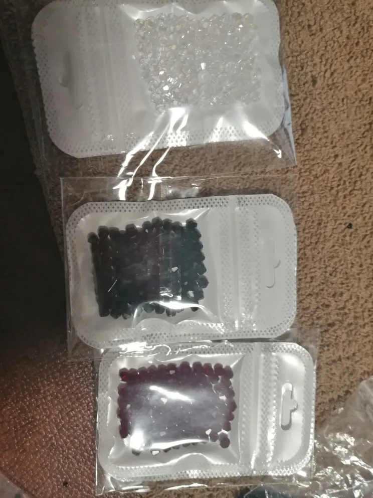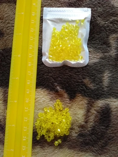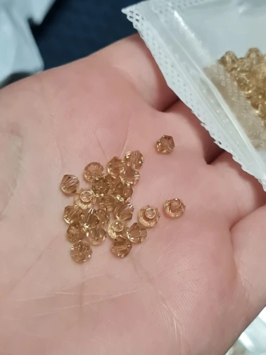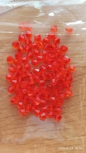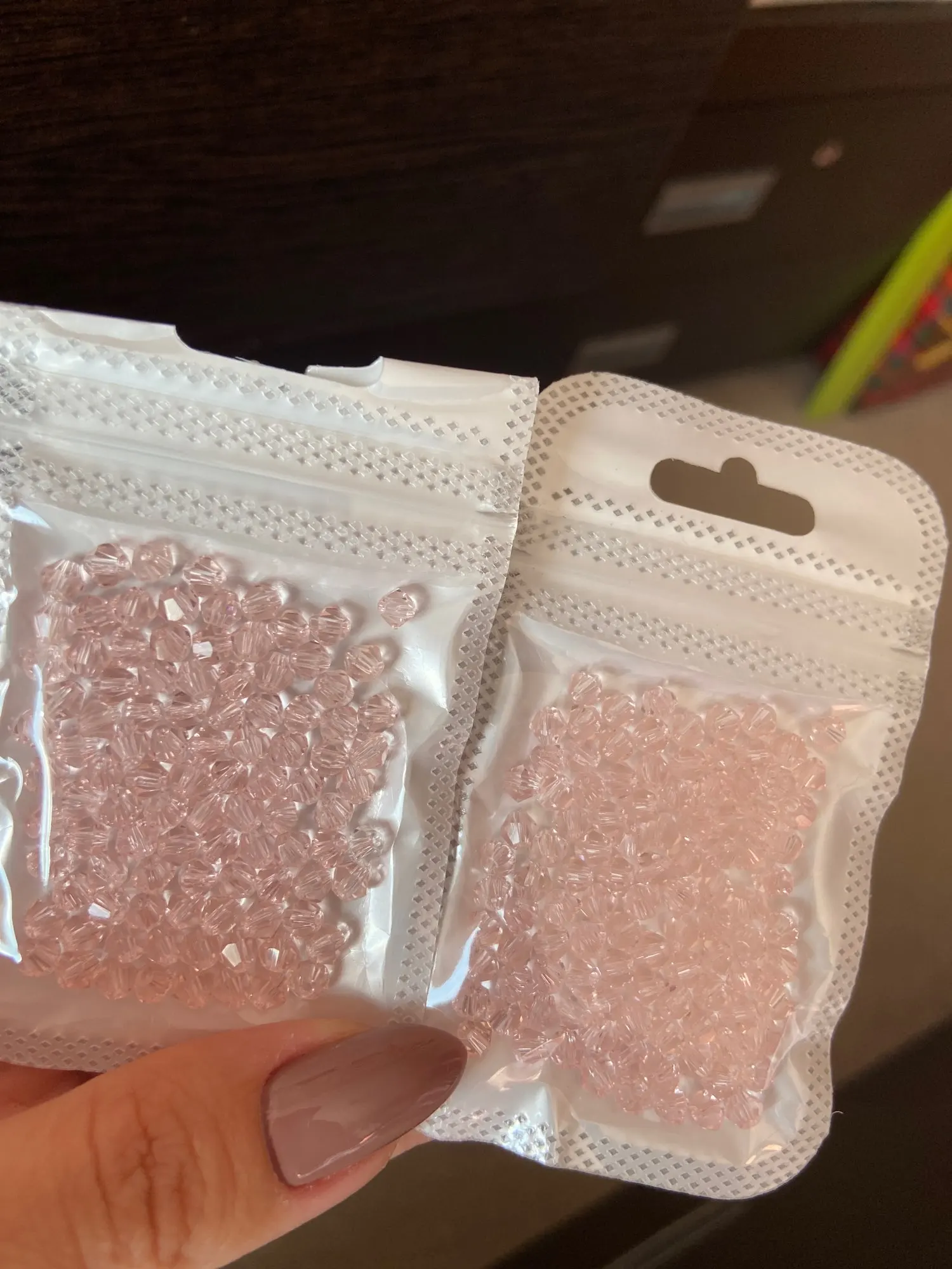 Очень красивые бусинки, переливаются на свету, сначала показалось, что пришли просто прозрачные, но нет, есть радужный отлив, как у бриллиантов. Бусины пришли целыми и без повреждений, соответствуют описанию, пришли два пакетика как и заявлено продавцом. Рекомендую!!!