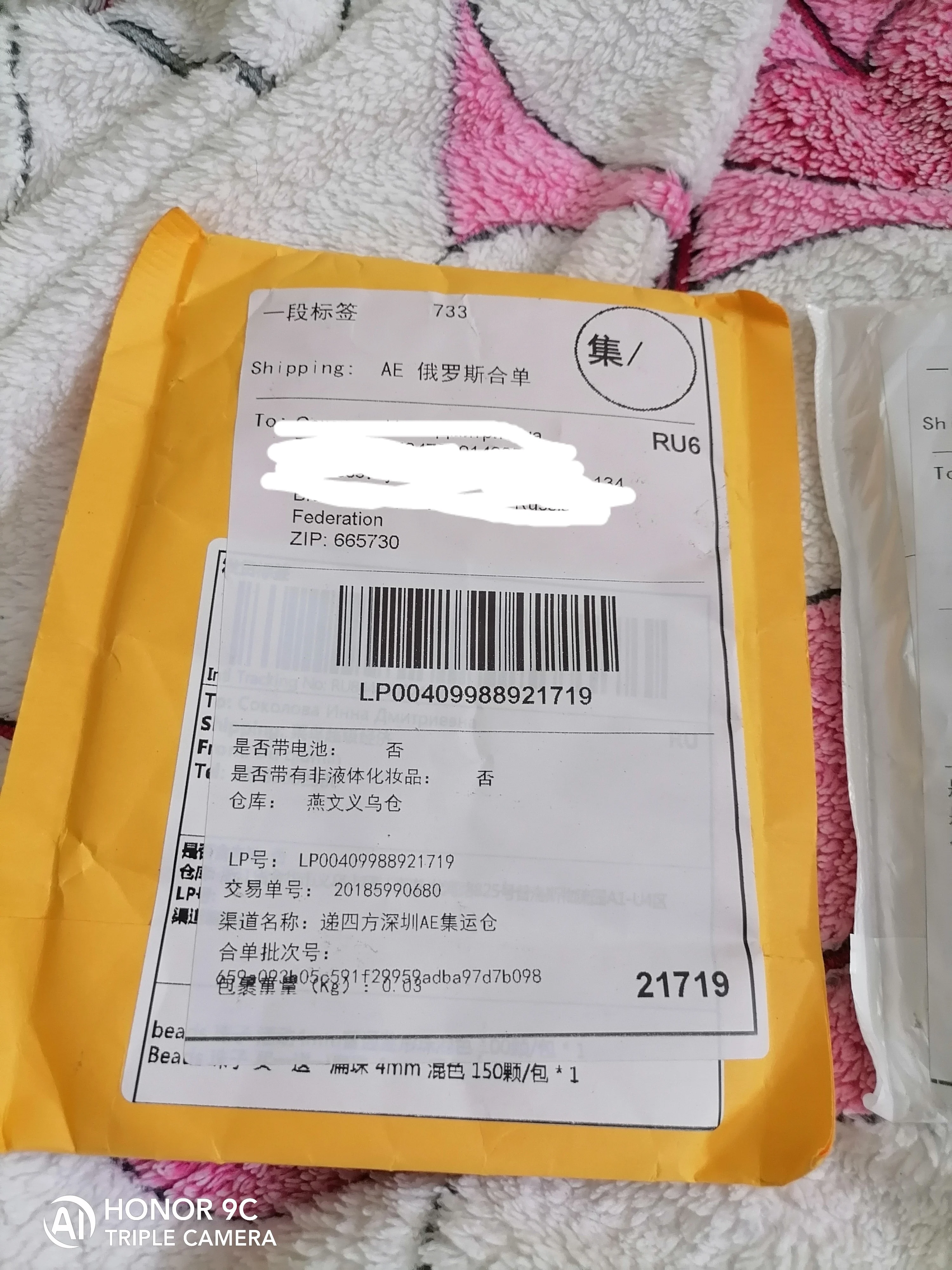 два пакетика бусинок, в одном как и должно быть 100 шт., а во втором 99 шт.Пришли быстро, за 21 день в Пермь. С продавцом не общалась.