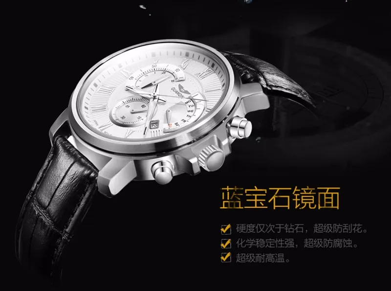 Материал зеркала часов: сапфировое стекло Бренд:Гуанцин Модель: GF506 Тип движения:Кварцевые часы Категории часов: мужские Материал ремешка: натуральная кожа Форма:Круглый Способ отображения: двойной явный Время выхода на рынок: в 2020 году Водонепроницаемость: 30 м Дополнительные характеристики: инструкции 24 часа, часы синхронизации, календарь, три небольших стежка Стиль кнопки часов: кожаный ремень с темной пряжкой Тип нижней части стола: Обычный Тип короны: Обычный Толщина циферблата: 12 мм Диаметр циферблата: 38 мм Происхождение: Китай Популярный элемент: восстановление древних способов