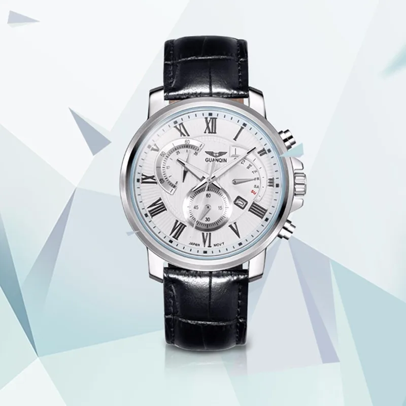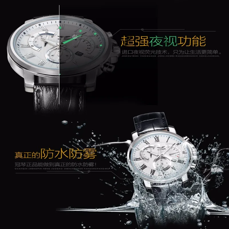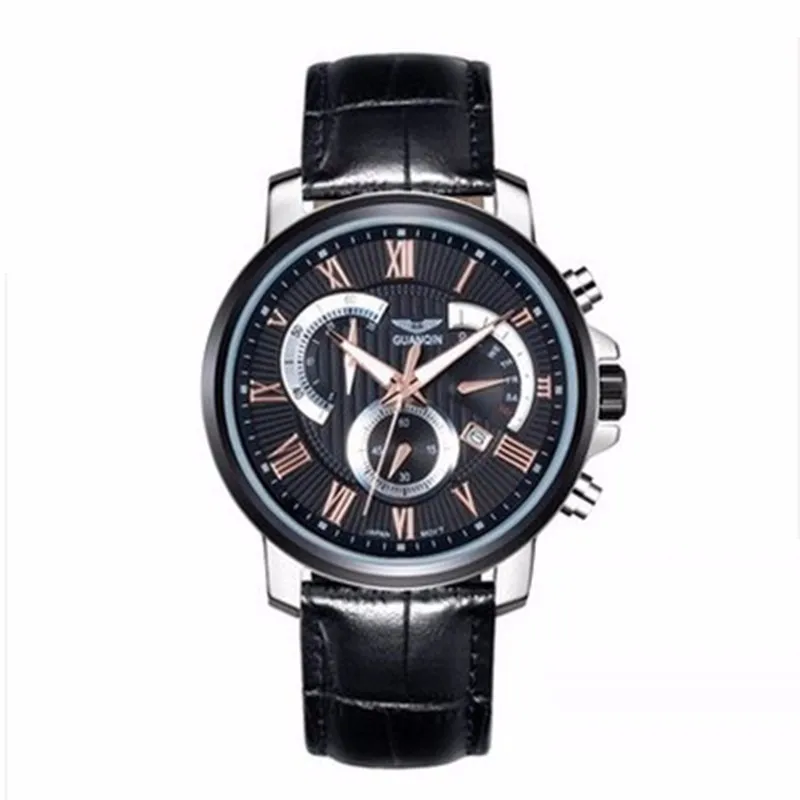 Светящиеся оригинальные мужские часы GUANQIN 2020, роскошные модные мужские кварцевые часы, спортивные повседневные мужские наручные часы с кожаным ремешком для мужчин, часы