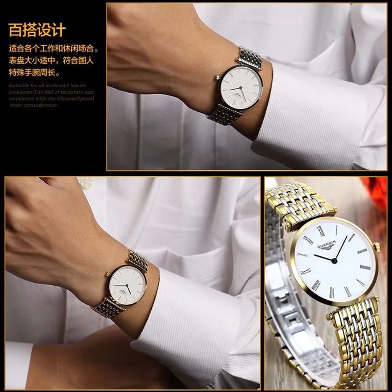 Оригинальные GUANQIN мужские часы кварцевые модные мужские часы из нержавеющей стали противоударные водонепроницаемые часы золотые мужские наручные часы