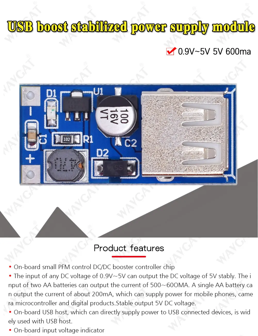 WAVGAT DC-DC USB-выход, Повышающий Модуль усиления мощности, 0,9 В 5 В до 5 В, мА USB-плата усиления мощности для мобильных устройств
