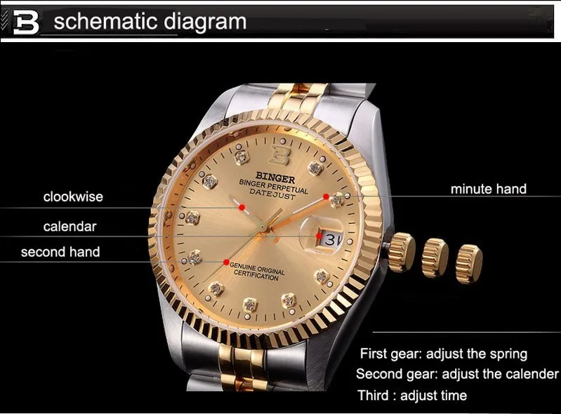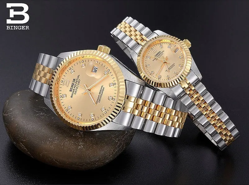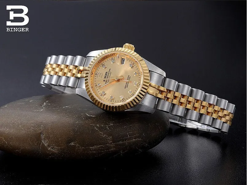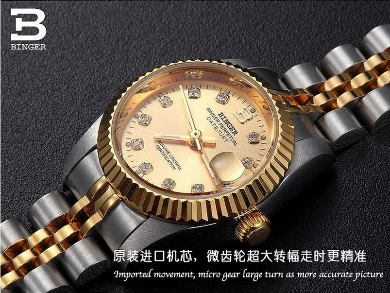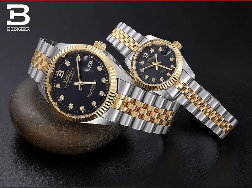 Роскошные наручные часы от швейцарского бренда BINGER Diamond, женские часы, автоматические механические часы для пар, водонепроницаемые часы с ремешком на руку и с ремешком на руку, для ношения в руке или на руке. icon star icon star icon star icon star icon star