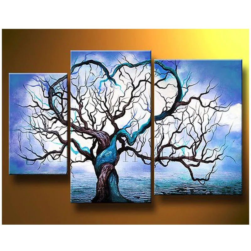 Классический стиль, украшение дома алмазов картина синий океан Облако Дерево 3 штук, искусственный бриллиант из смолы, квадратная дрель полная Алмазная вышивка