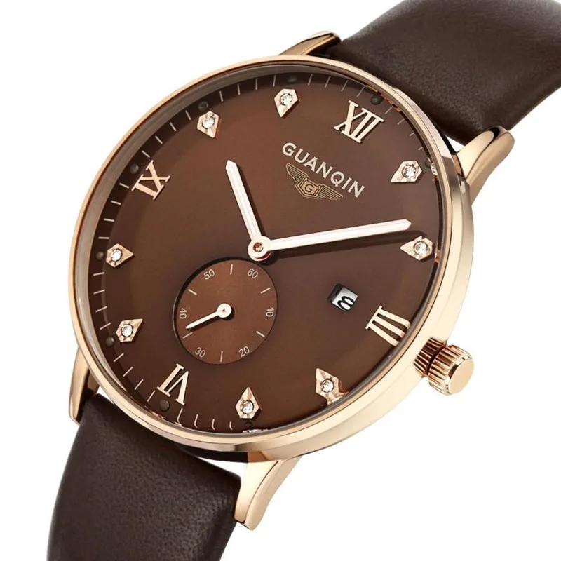 Оригинальные мужские часы GUANQIN 2021 с кожаным ремешком, водонепроницаемые часы, дизайнерские кварцевые часы, мужские наручные часы, мужские часы