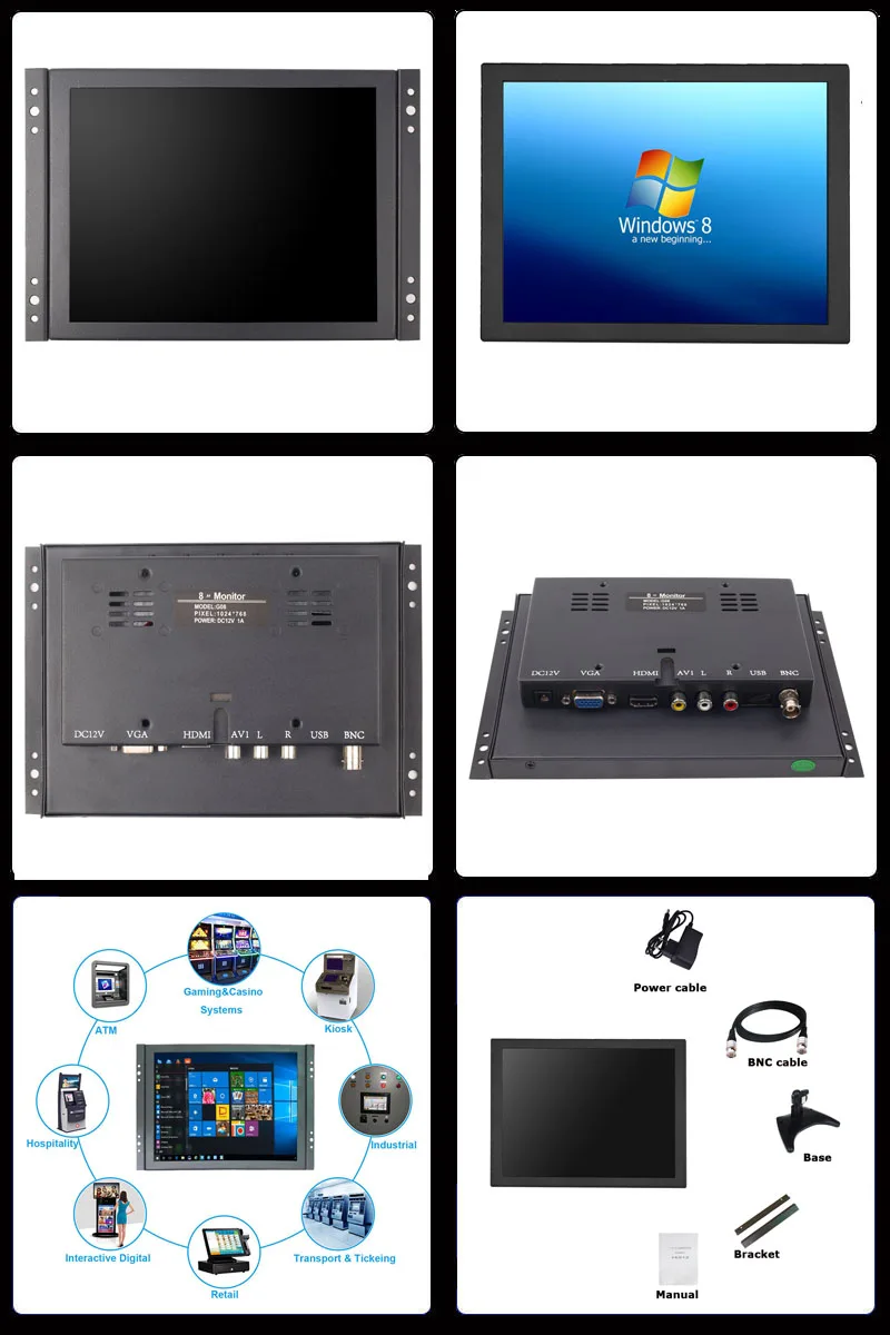 Промышленный ЖК-монитор G08, 8 дюймов, с открытой рамкой, настенный металлический чехол, монитор с входом сигнала VGAHDMIBNCUSBAV
