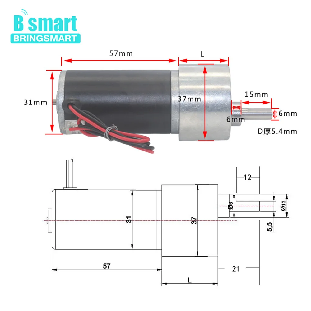 Редуктор постоянного тока Bringsmart JGB37-3157, 12 В, низкоскоростной, с высоким крутящим моментом, Реверсивный, 24 В