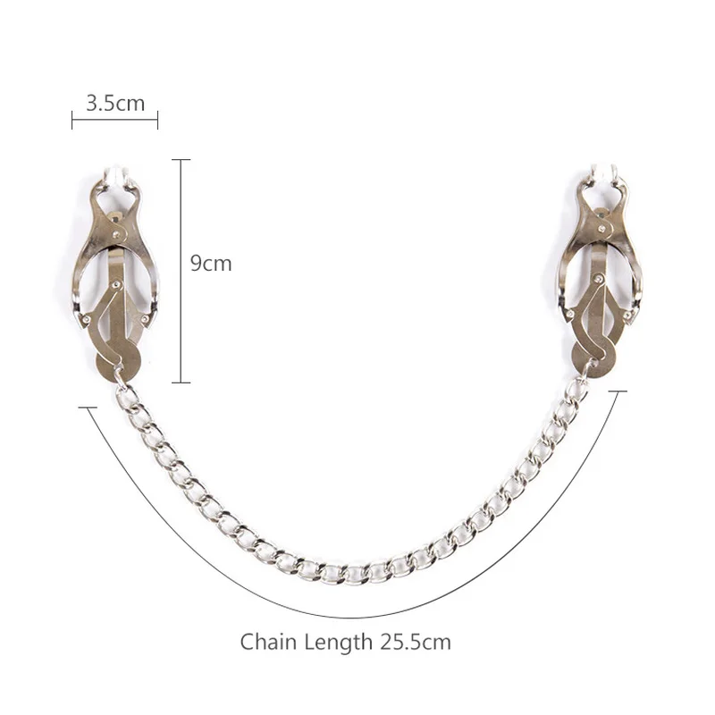 Введение продукта Материал: металл, Длина цепочки: 25,5 см Модный с компактным и нежным дизайном бабочки Предназначен как для удовольствия, так и для сладкой боли Пусть ваши соски будут наслаждаться полной болью и счастьем одновременно Забавная и надежная игрушка для флирта для пар Изготовлен из высококачественной марганцевой стали, полностью безопасен и гипоаллергенен