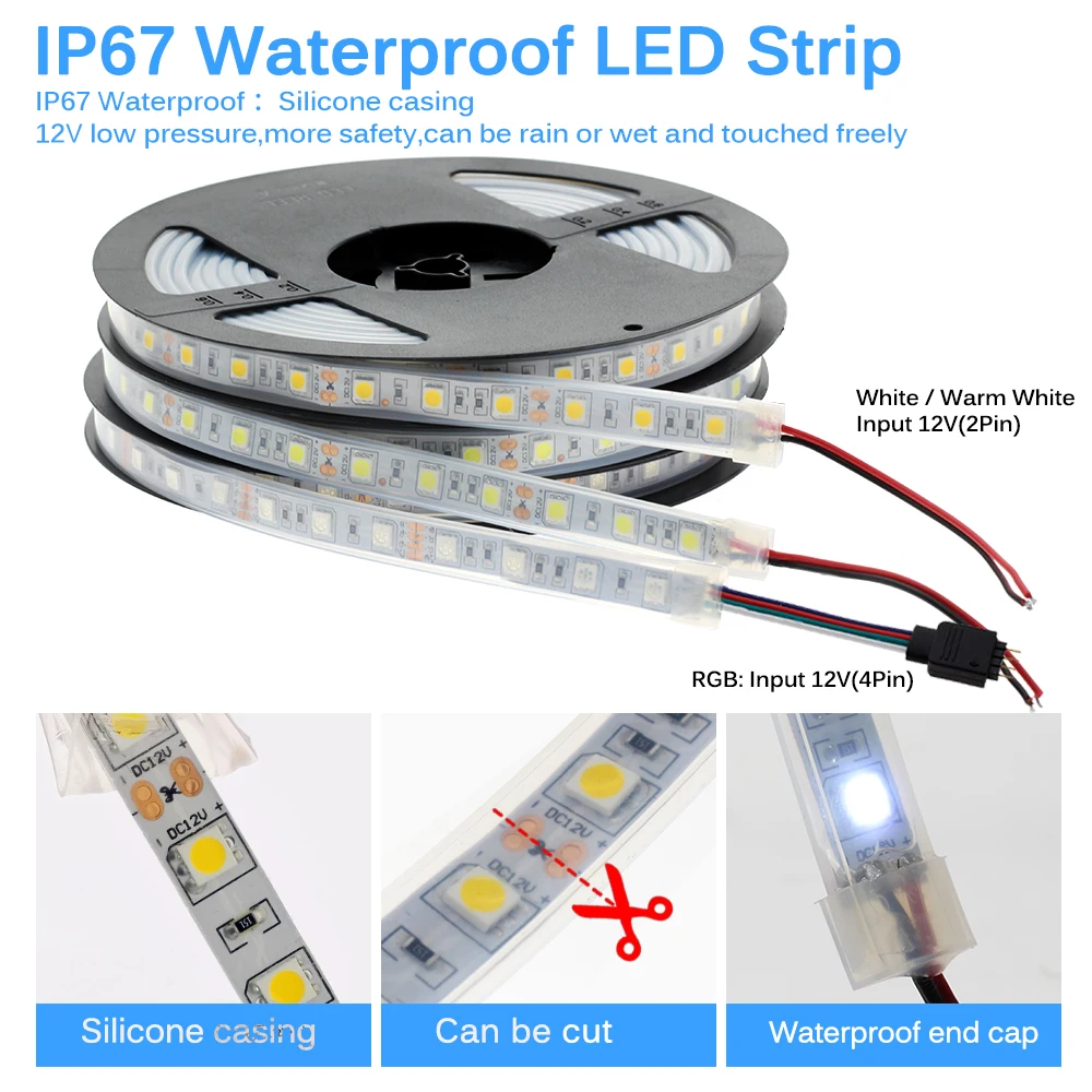 IP67 IP68 водонепроницаемая светодиодная лента 5050 DC12V высокого качества для подводной и наружной безопасности RGB Светодиодная лента светильник 300 светодиодный s 60 Светодиодный sM 5 млот