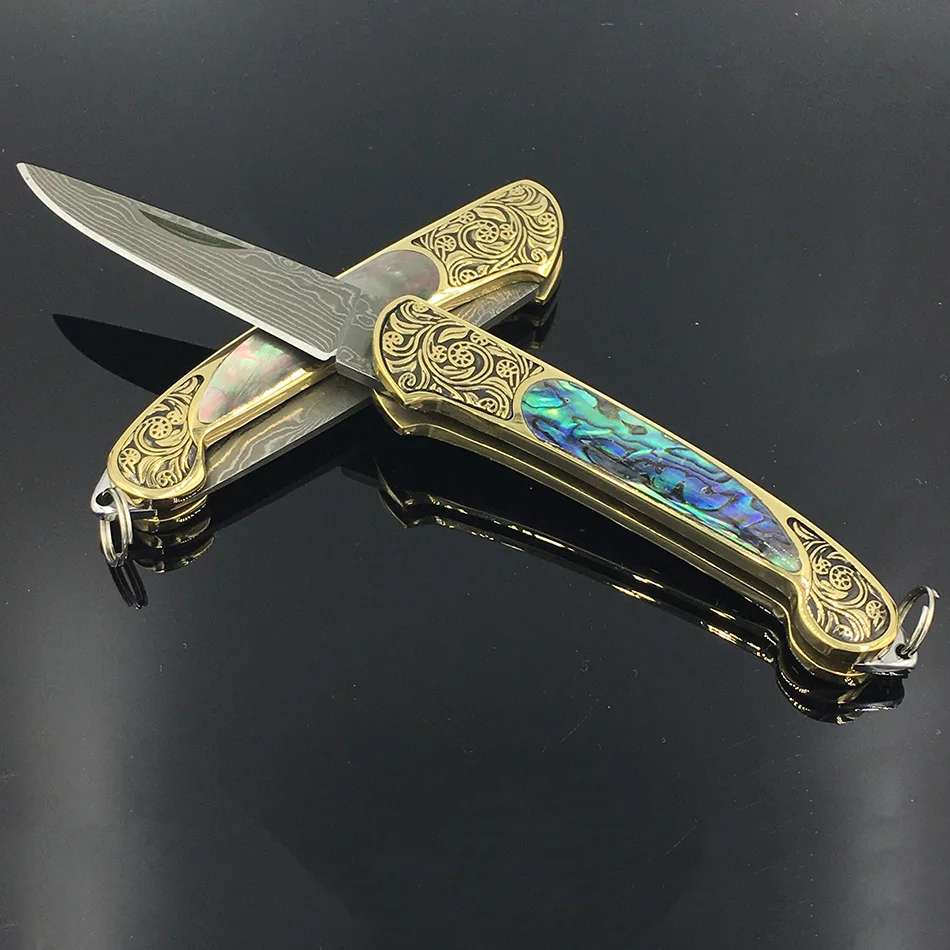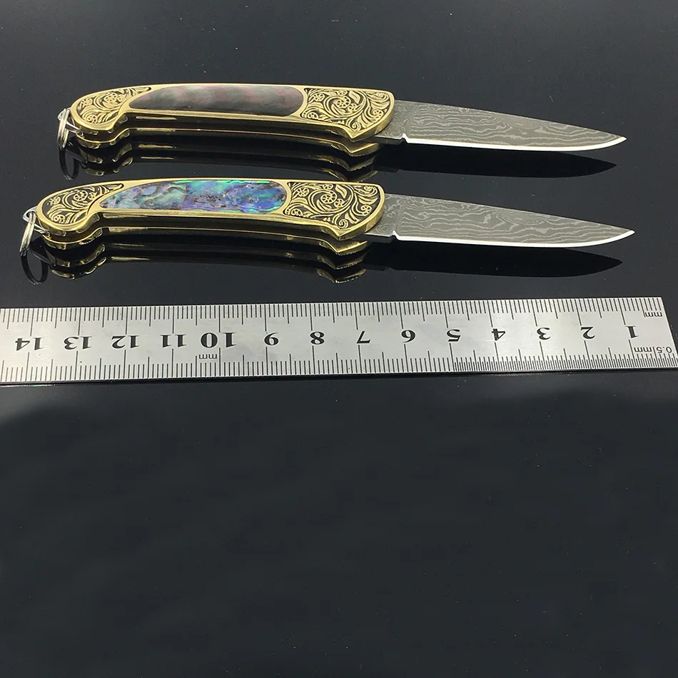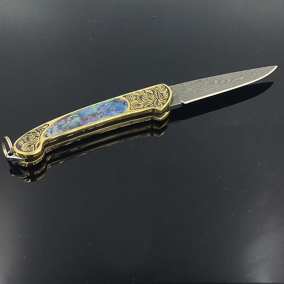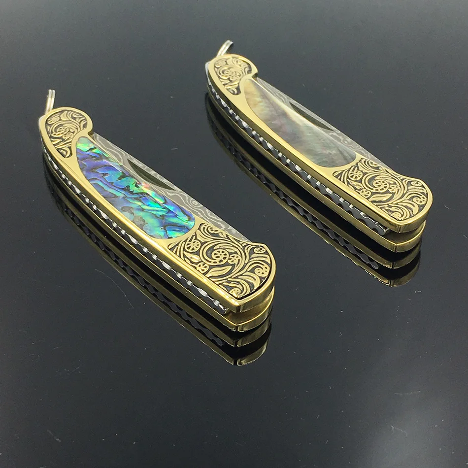 Лезвие из дамасской стали ручной работы, Желтая латунь + Черная жемчужина, ручка, карманный складной нож, универсальный нож, нож, гравер, латунная ручка