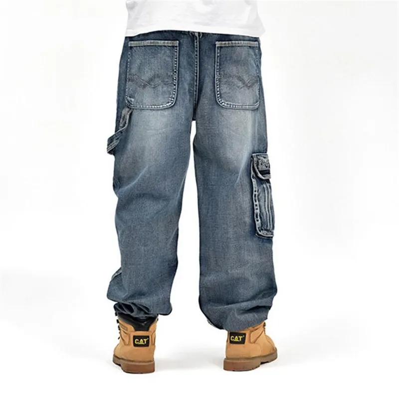 Мужские мешковатые джинсы ABOORUN в стиле хип-хоп, синие джинсы-карго с несколькими карманами, мужские свободные джинсы для скейтборда, P3071