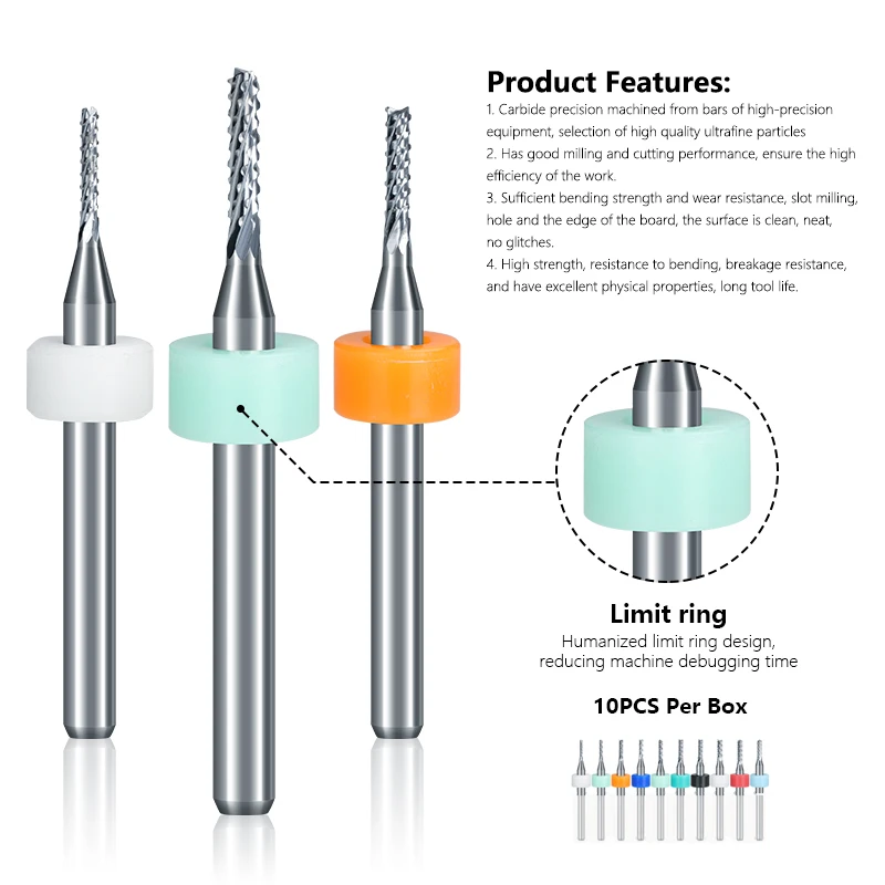 XCAN 10 шт. 0,5-3,175 мм карбидная печатная плата фреза доливочный резак 3,175 мм хвостовик ЧПУ гравировальный станок Концевая фреза