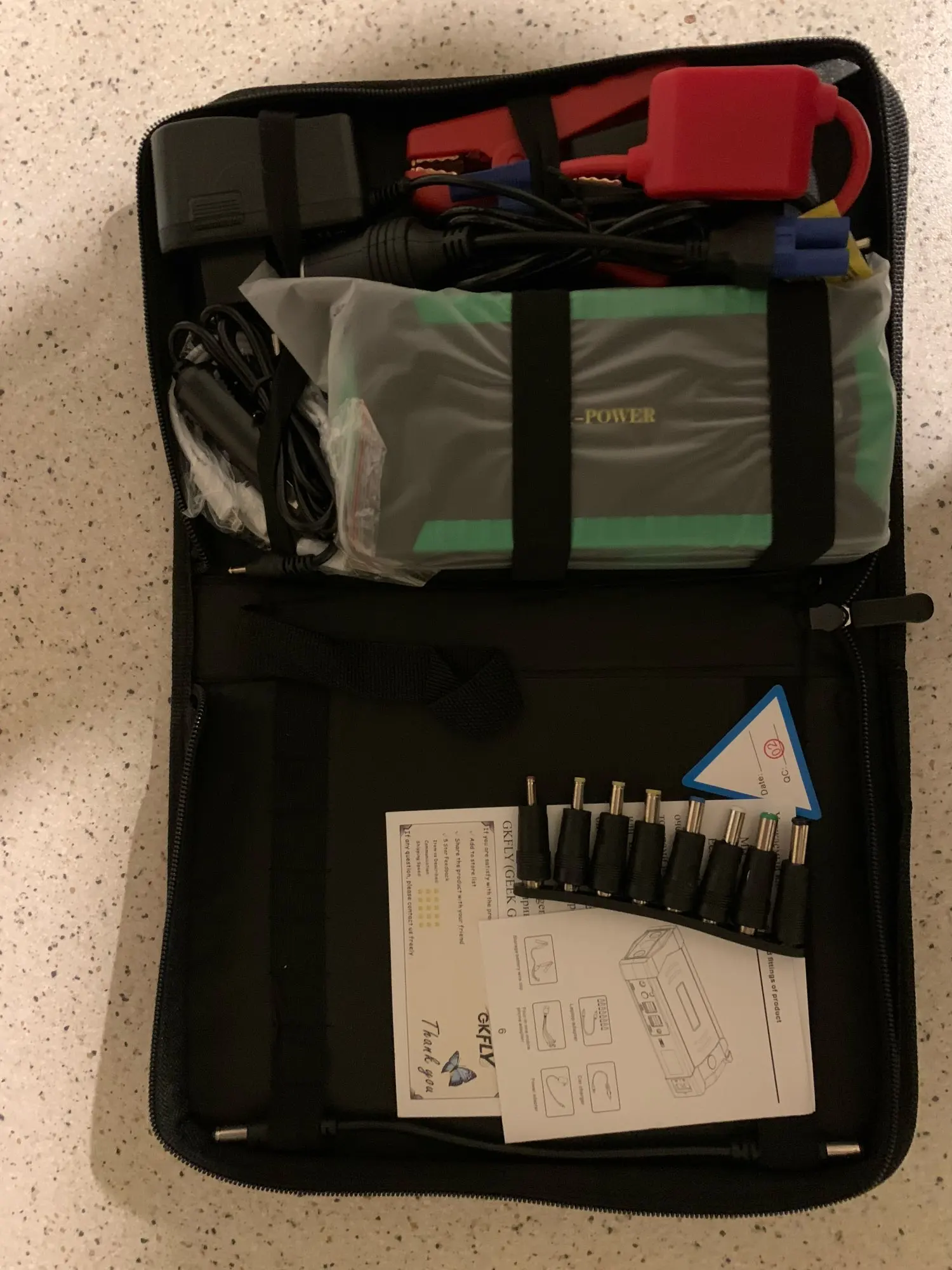 Команда выглядит отлично! Это заняло больше дней, и мне пришлось заплатить таможенные налоги, чтобы освободить его, но я надеюсь, что оно того стоит. Это приносит много аксессуаров, это работает хорошо. Осталось только доказать это при зарядке аккумулятора автомобиля!