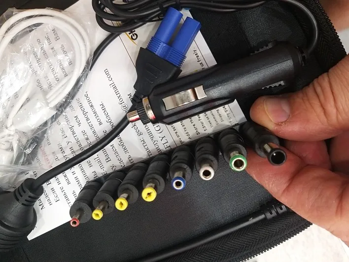 Доставка три дня. Прикольный набор с кучей переходников. Есть фонарик и моргающие красно-синие лампочки... аля ГАИ). Пришёл заряженный на 94 %. В работе не проверял