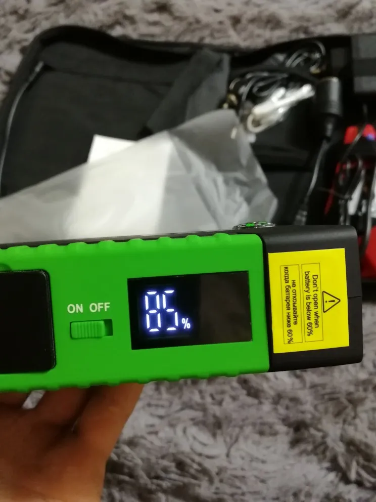 Всем доброго дня. Товар получил за семь дней за что огромное спасибо продавцу. Качество хорошее мне нравится . Успел уже пробовать запустить машину без аккумулятора заряд 99 процентов завёл с пол оборота двигатель 1.8 бензин при минус один, при морозе не знаю как будет. После запуска ушёл один процент стала 98. При запуске не нужно включить кнопку включения запускает без включение. кнопка для повербанка. Покупкой доволен всем рекомендую.
