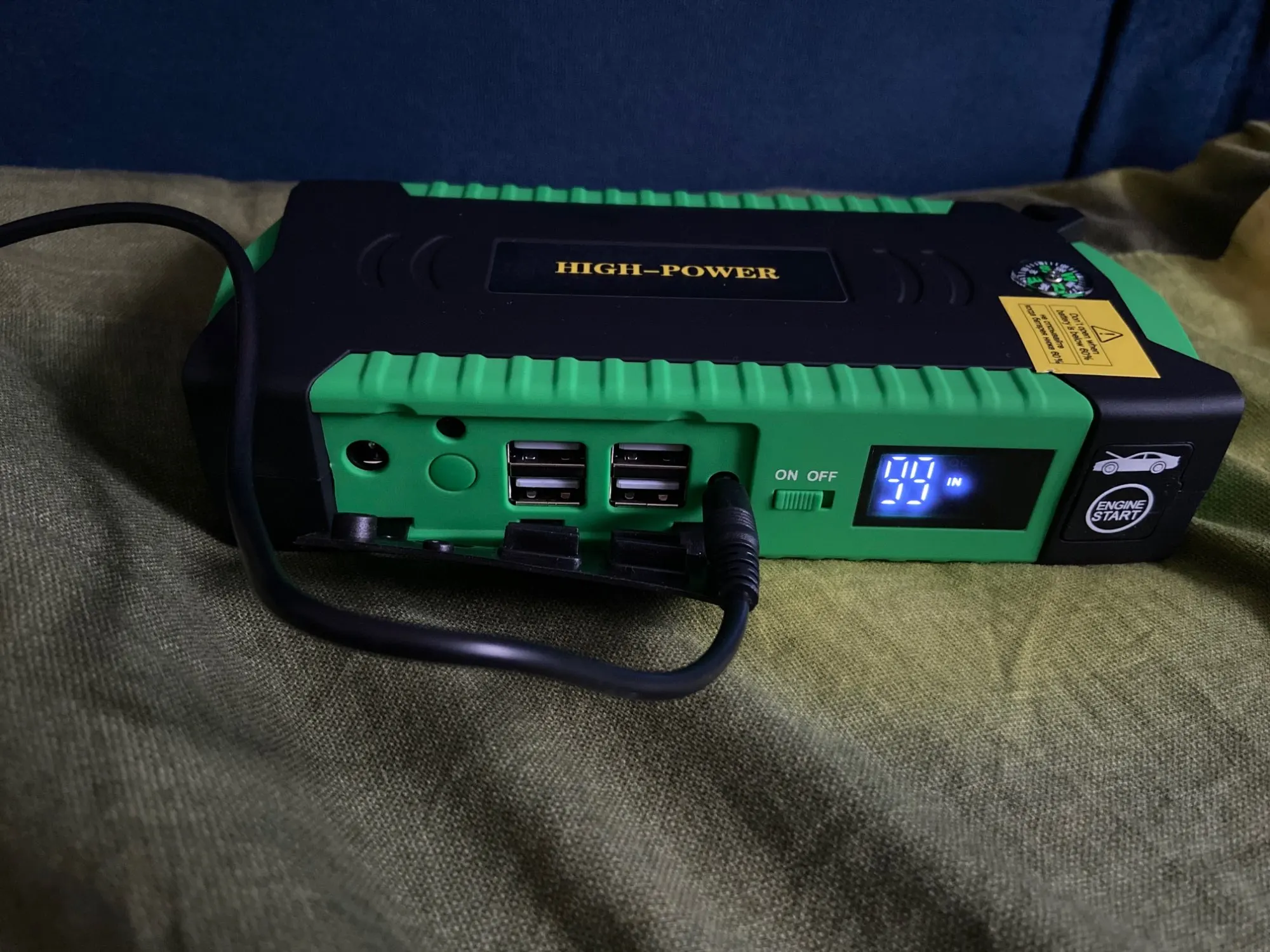 Проверил только фонарик. Все остальное покупалось в большей степени для компрессора накачивать матрас. И второстепенное назначение запуск машины.