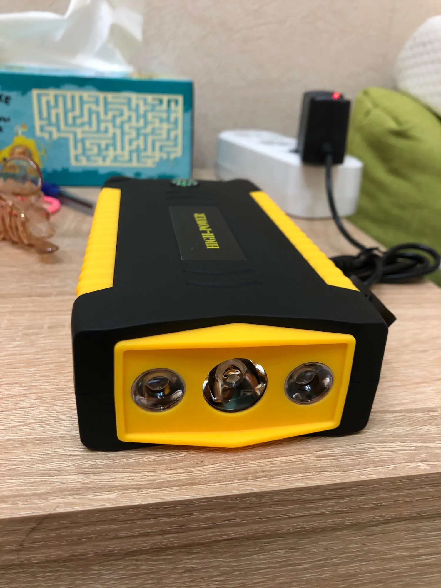 До Нижнего Новгорода посылка пришла за два дня. В целом на первый взгляд всё хорошо чино благородно, телефон заряжает. Покупал для запуска авто. Зима придёт опробую, отзов дополню. Запах пластмассы китайской присутствует, не сильно но есть