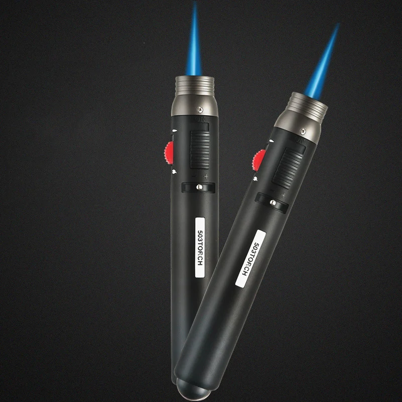 Двойфонарь Зажигалка для сигар, креативная ручка, ручной газовый надувной синий струйный пламя, высокая температура 1300 , инструмент для барбекю и улицы