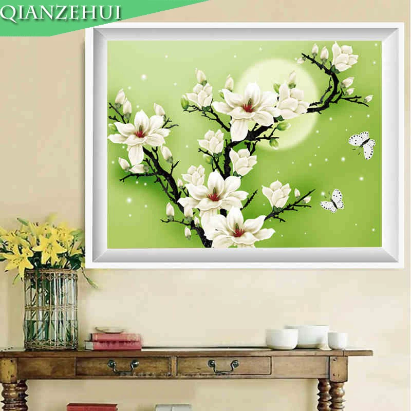 QIANZEHUI, рукоделие, 3D вышивка крестиком из цветов магнолии, Цветочная серия, Лунная Магнолия для вышивания комплектов, вышивка крестиком
