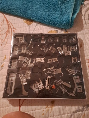 1 х Пластиковая темная Лапка 1 X стикер вышитые лапки 1 х прижимная лапка 1 X прижимная лапка 1 X лапка с вышивкой 1 X Центральная прямая Лапка 1 X невидимая молния Лапка