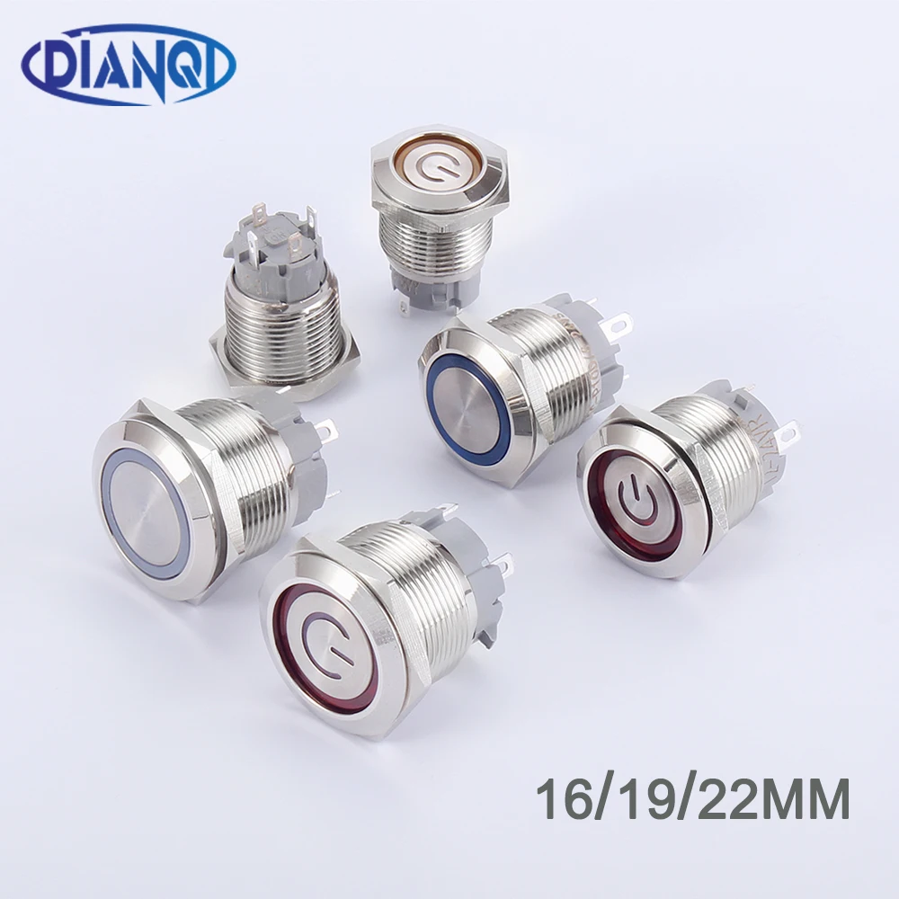 16 мм 19 мм 22 мм металлический кнопочный переключатель короткими пальцами Блокировка с фиксацией Self-моментальная Перезагрузка 1NO светодиодный черного, красного, синего, желтого, зеленого, белого цвета