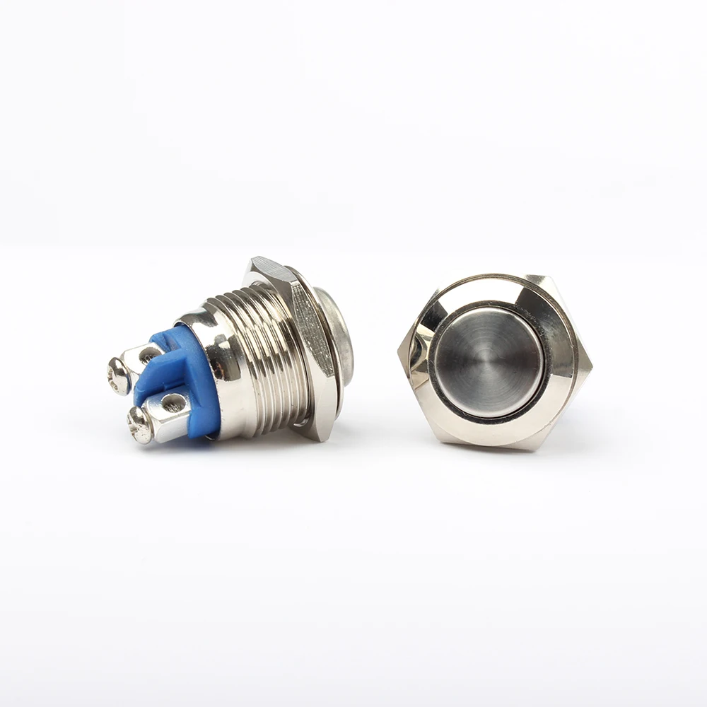Металлическая кнопка 16 мм, водонепроницаемый никелированный латунный кнопочный переключатель, кнопка сброса, 1NO ВысокийплоскийСферический круглый Мгновенный