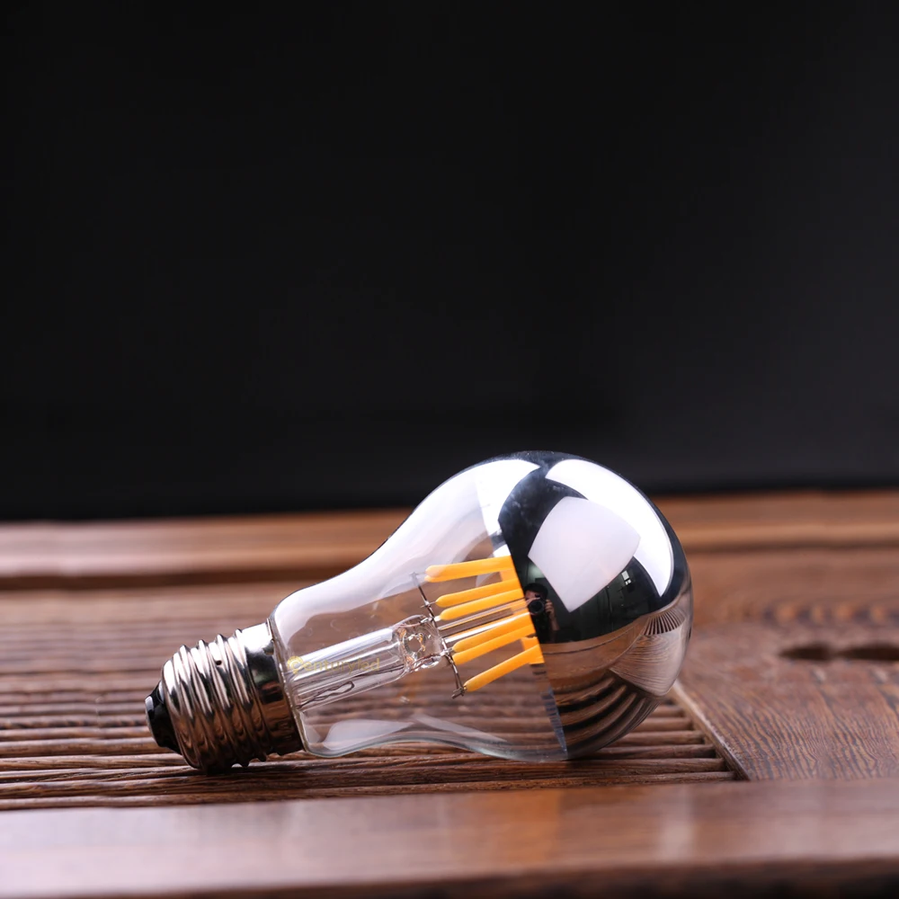 A19 Глобус Светодиодный светильник 8W 2700K затемнения светодиодный светильник лампочка Топ серебряное зеркало E26 E27 база Эдисон светодиодный лампы для украшения дома светильник Инж