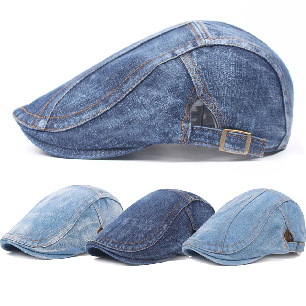 Регулируемый джинсовый берет для мужчин, женщин, повседневный берет...