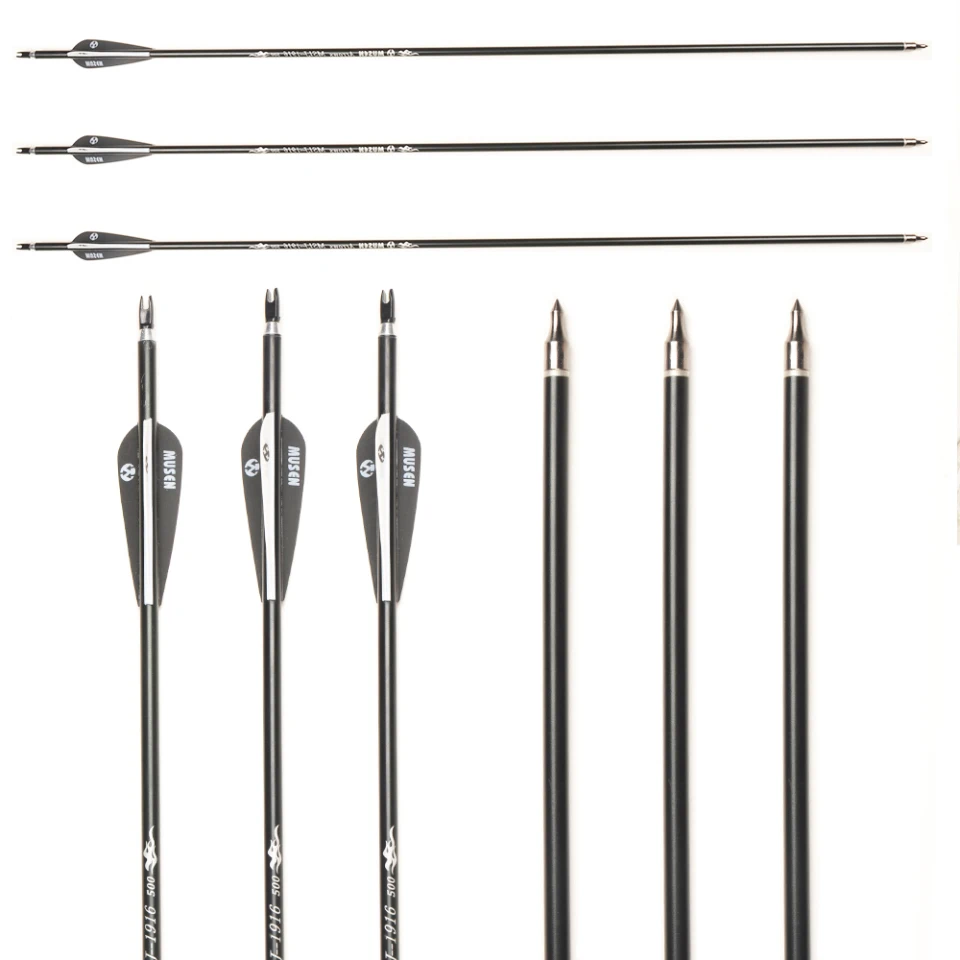 Стрелы из алюминия 30 дюймов 7,6 мм 500 черно-белого цвета для рекурсивногокомпозитного лука для охоты K