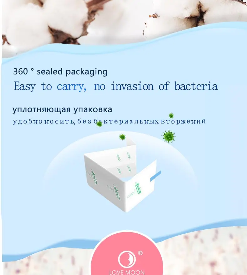 Гигиенические прокладки Love Moon, 100% хлопок, 10 упаковок
