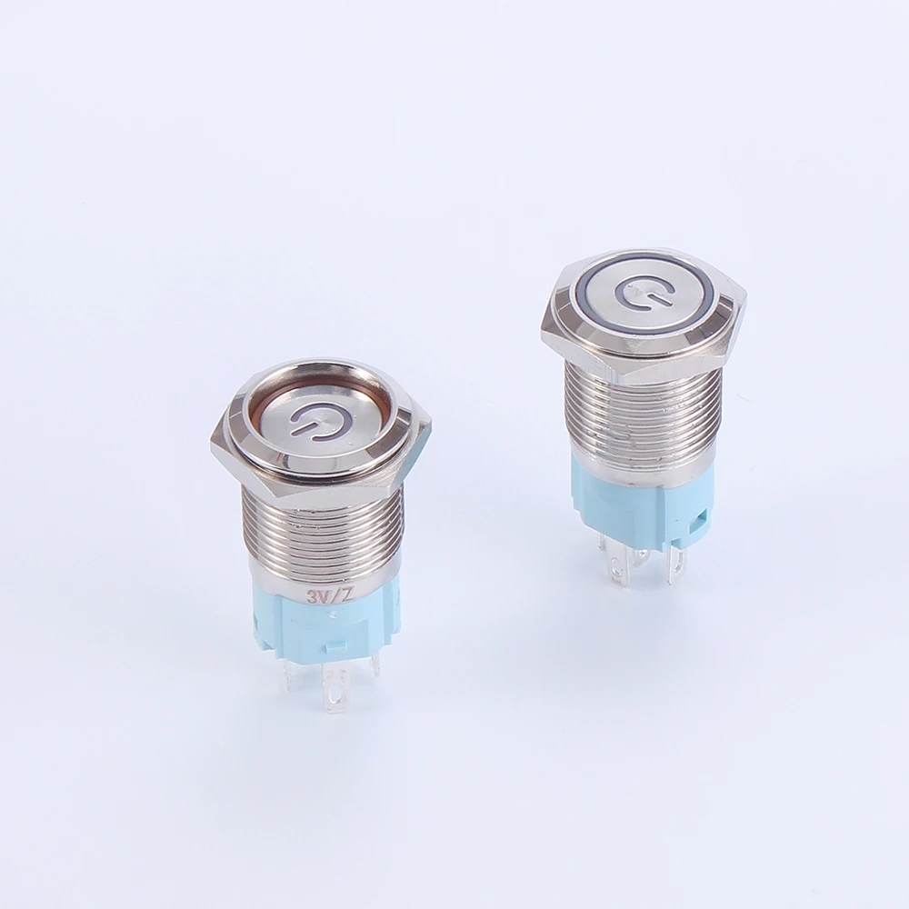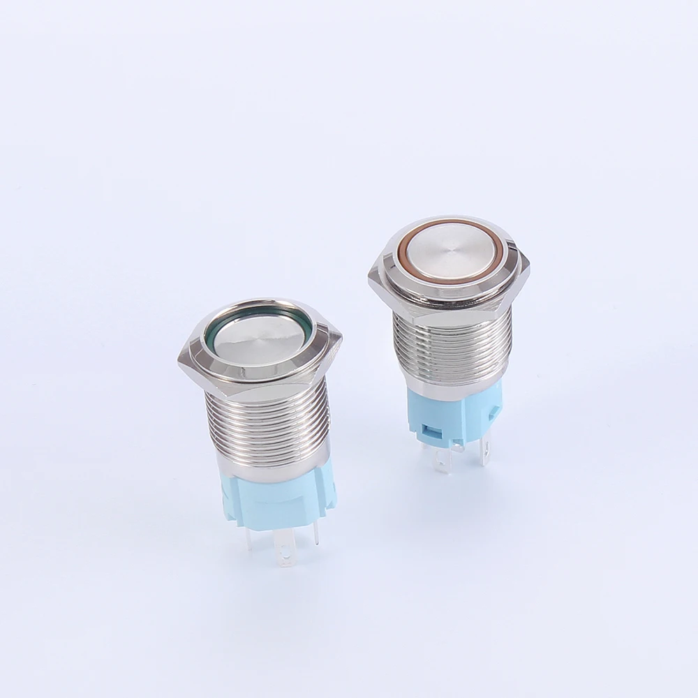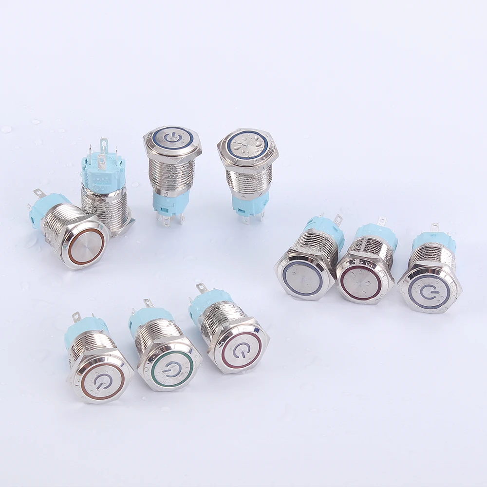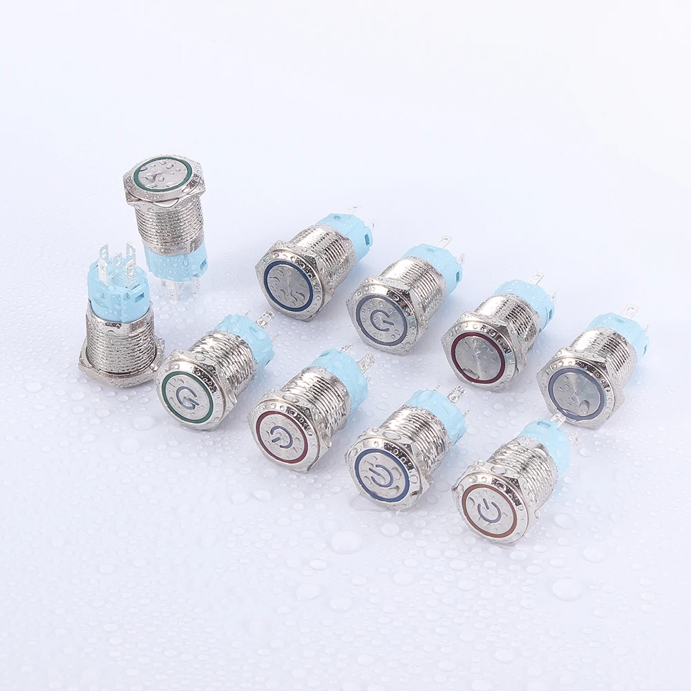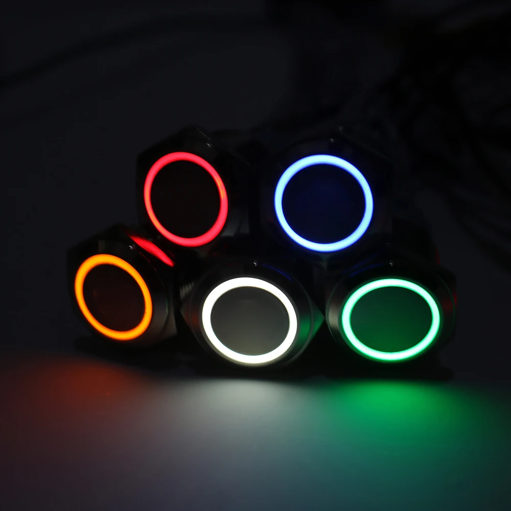 Металлическая кольцевая кнопка переключения 16 мм, кольцевой светодиодный индикатор питания 6 В, 12 В, 220 В, самоблокирующаяся искусственная водонепроницаемость для автомобильного двигателя