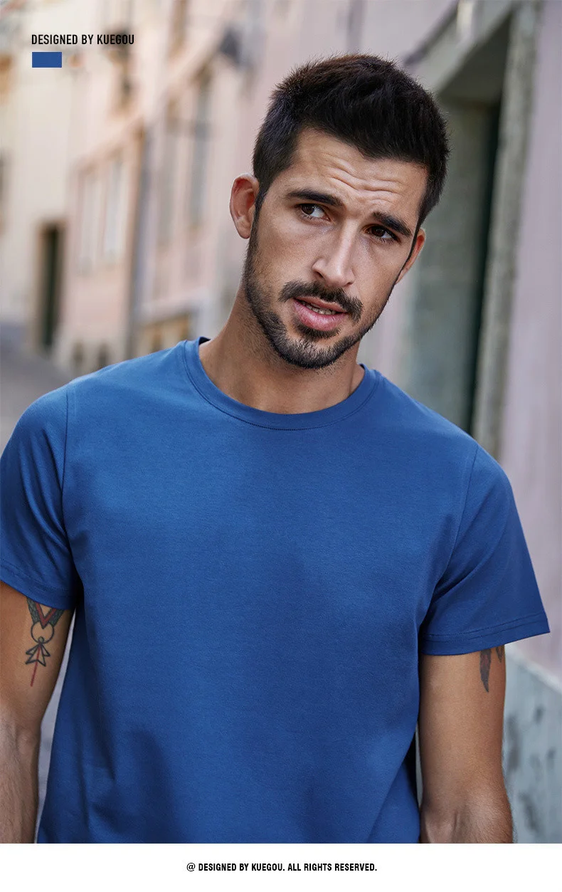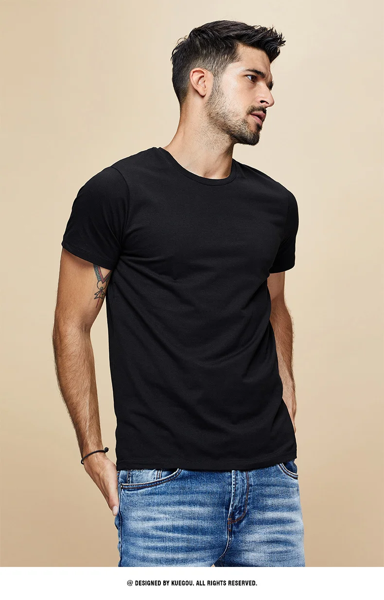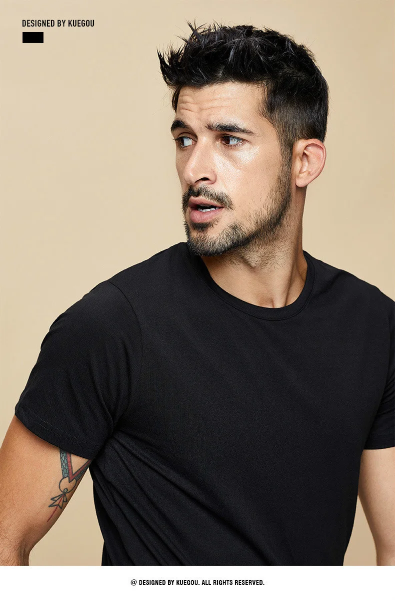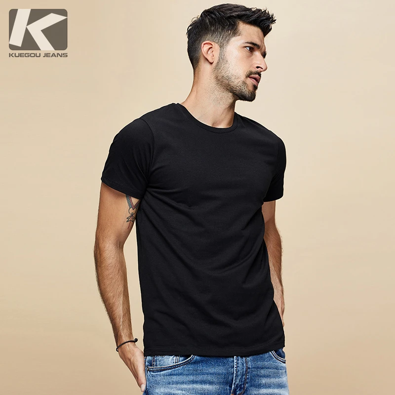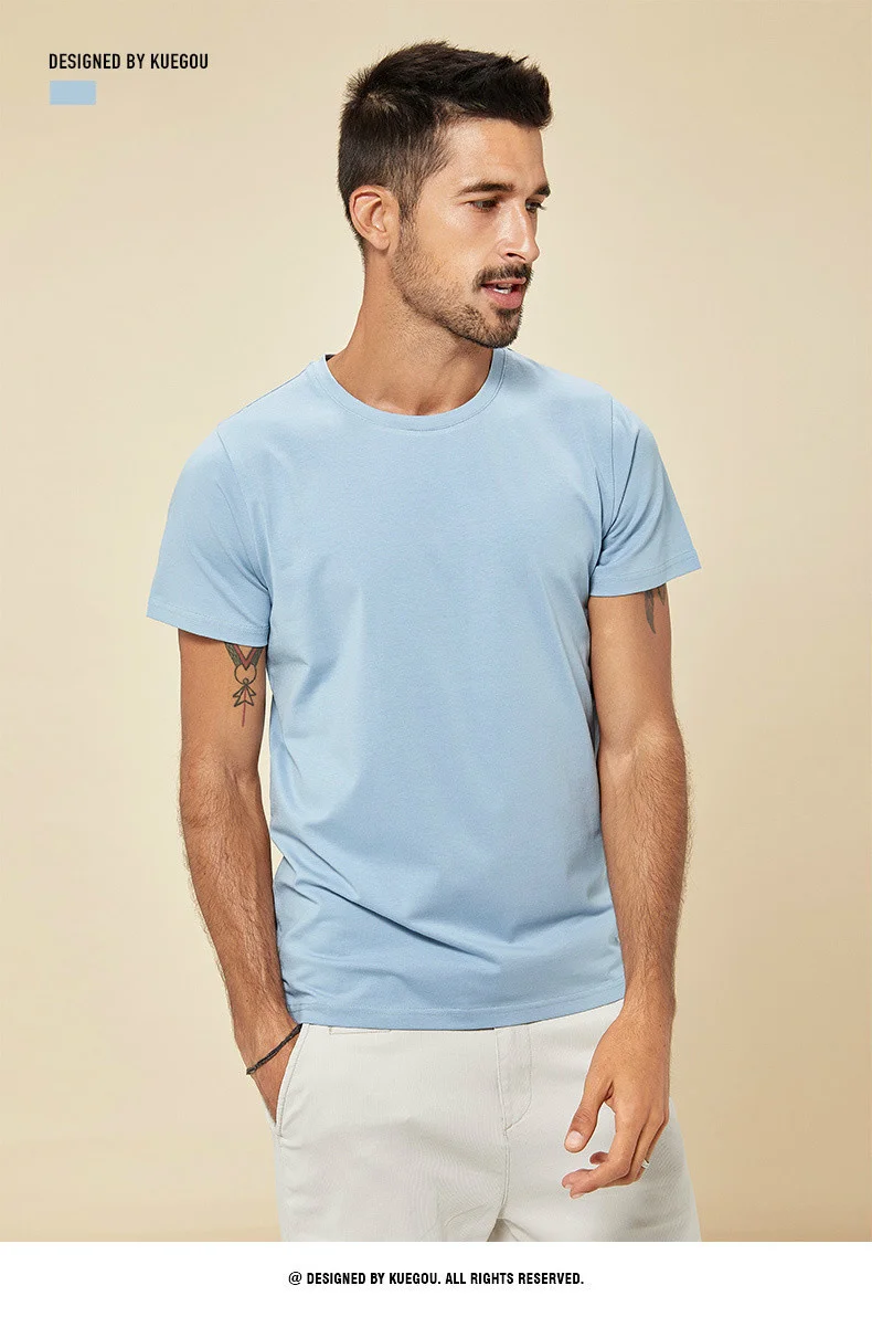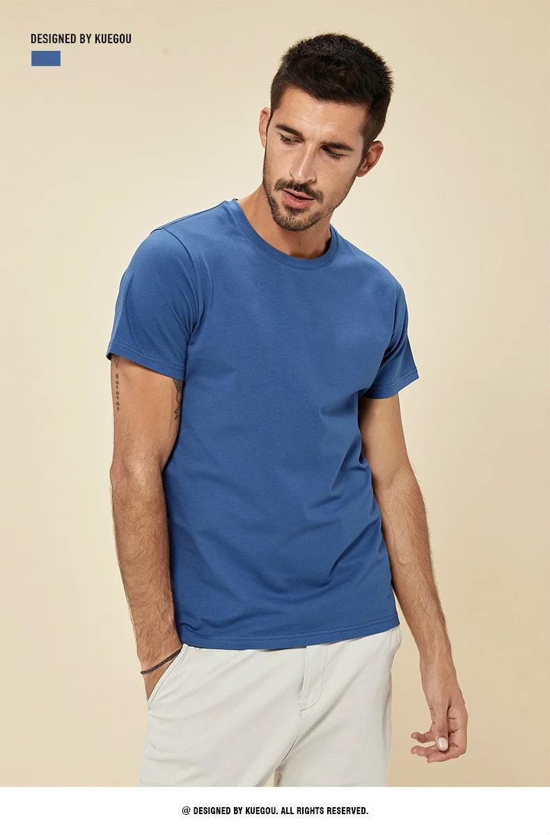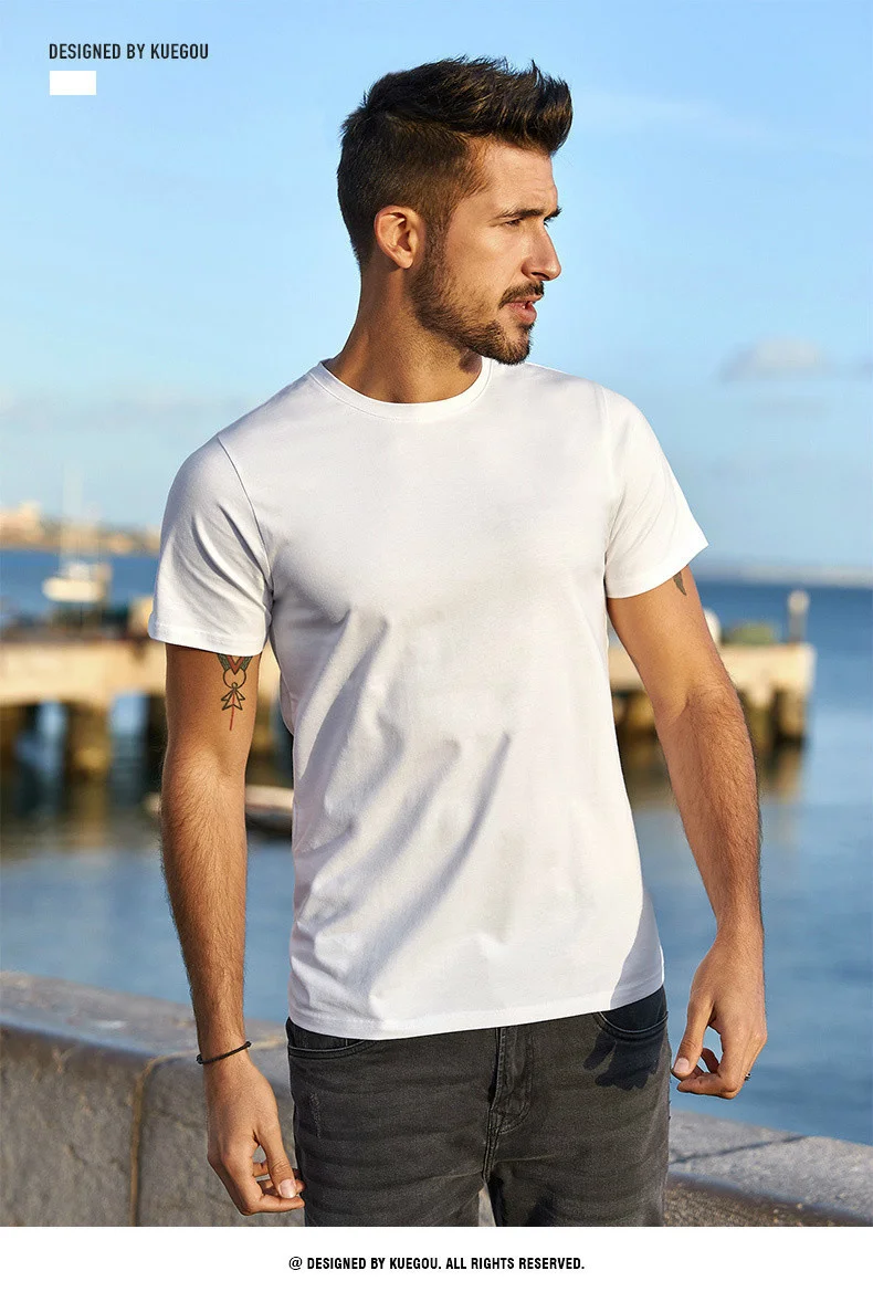 KUEGOU 2022 летняя хлопковая Простая белая футболка мужская футболка брендовая футболка с коротким рукавом Футболка для мужской одежды размера плюс Топ 701